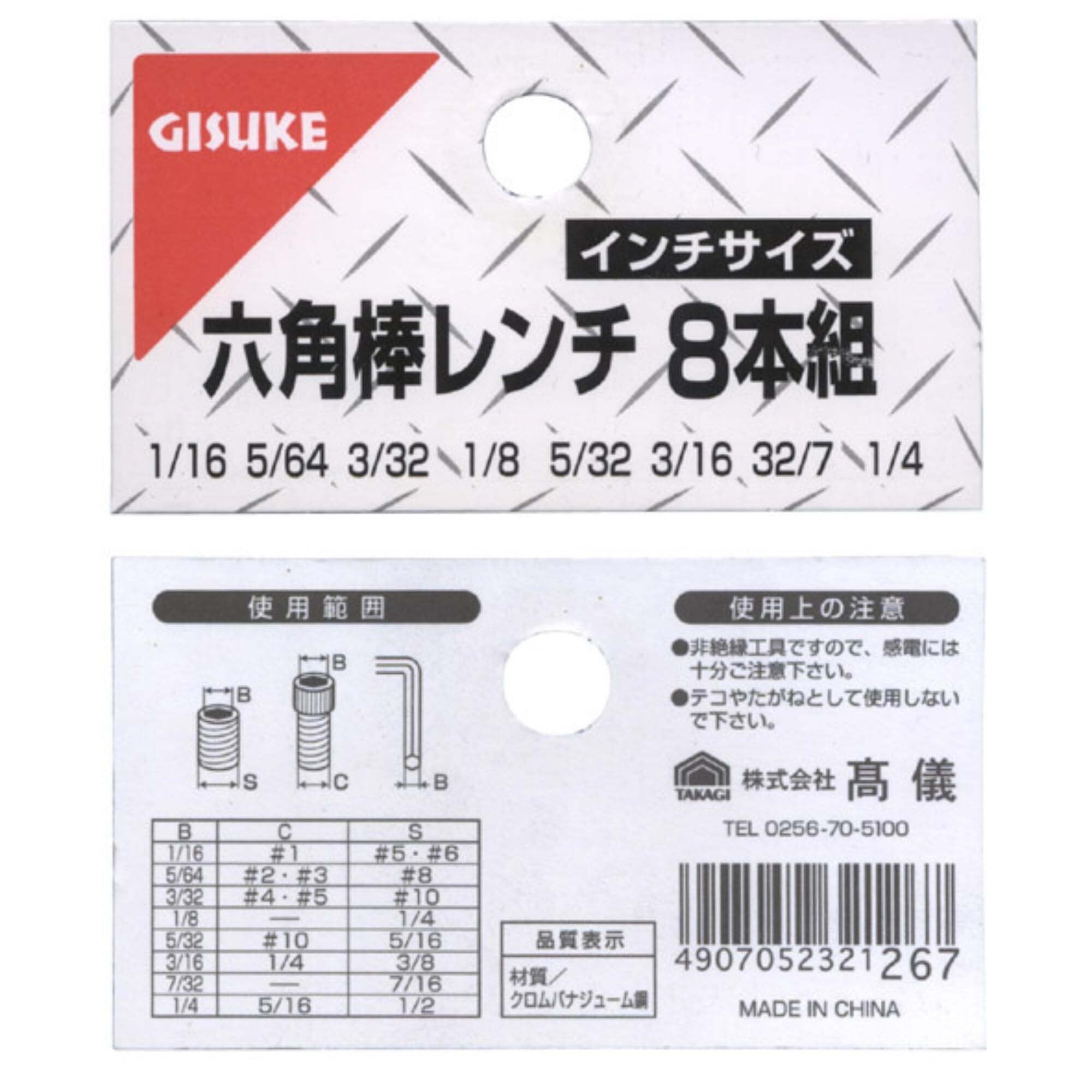 【在庫処分】高儀(Takagi) 六角棒レンチ リング付 インチサイズ 8本組 GISUKE
