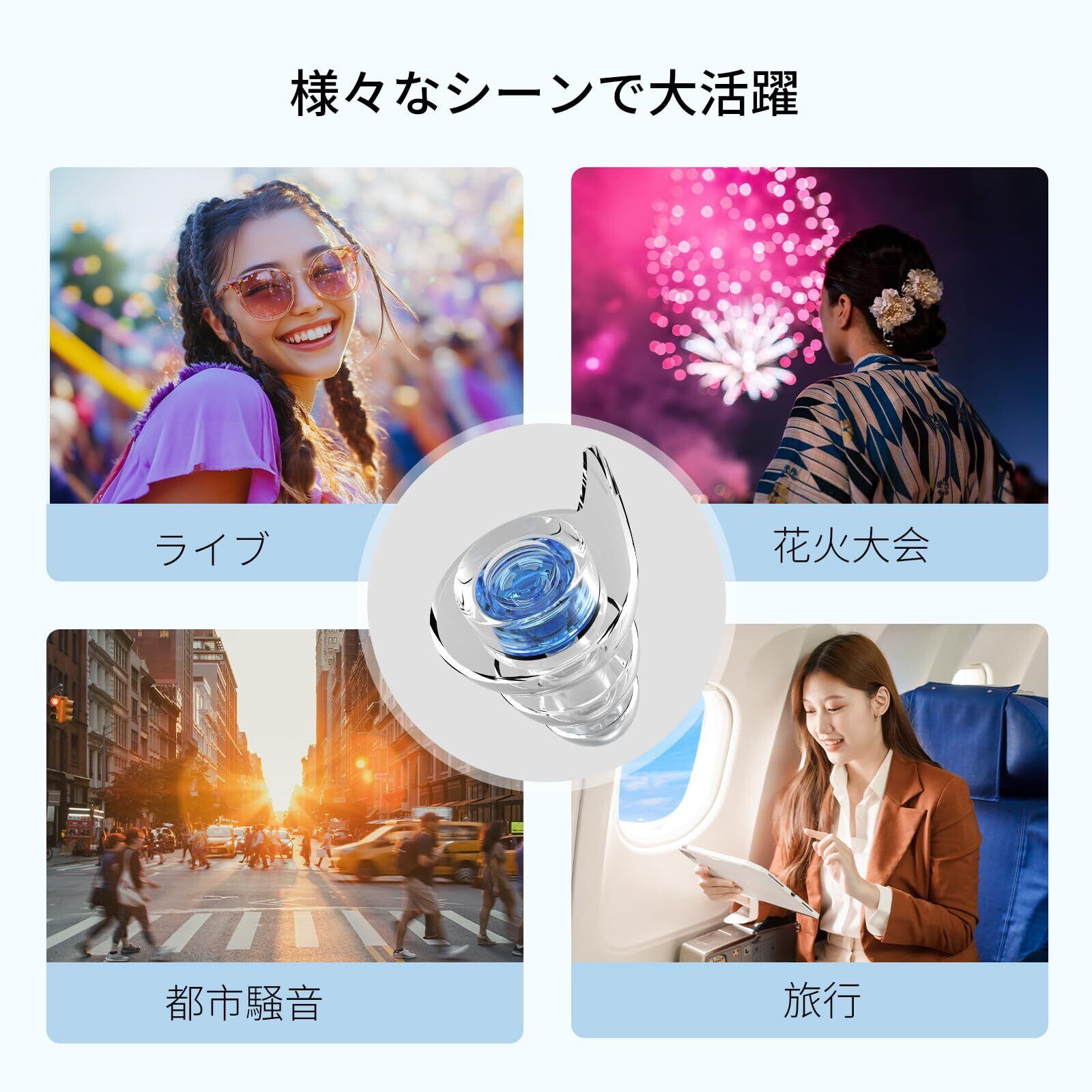 【様々なシーンで大活躍】ライブやフェス、バンド活動に適しています。ミュージシャンや、現場のスタッフは勿論、一般の音楽ファンが音楽をお楽しむの為に、Quietideのイヤープロテクターをお試しください。また、クラブ、映画館、スポーツイベント、花火大会、工事現場などの大音量が流れる場所、日常の生活音、都会の喧騒、混雑したバス、電車、飛行機などうるさい環境での不快感がある時にもご利用いただけます。
