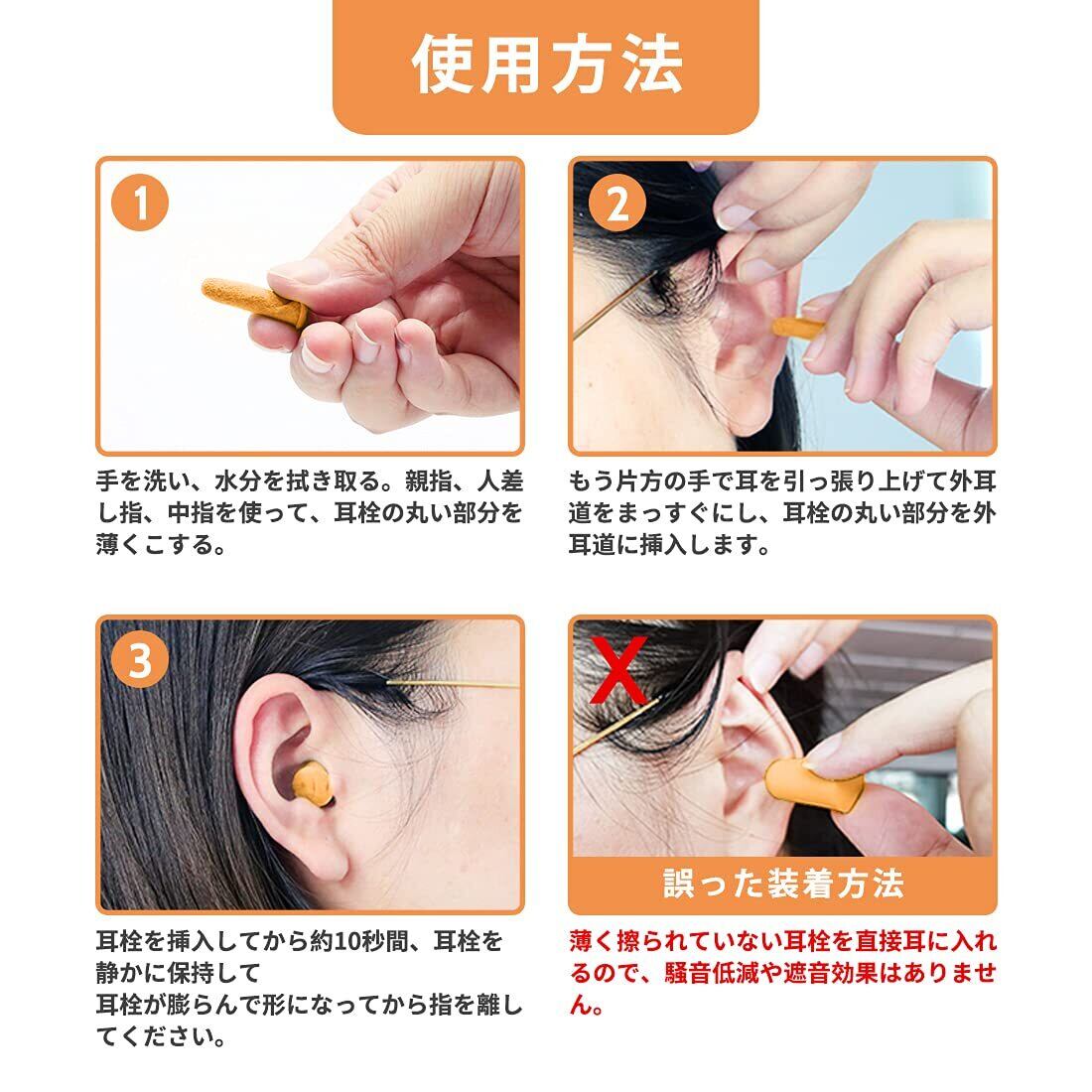 【超ソフトで快適な着用感】このソフトフォームイヤープラグは45秒でゆっくりと耳の中で復元して外耳道に膨らんで、周囲の音がだんだんと小さくなります。超柔らかくて低圧力で、長い時間装着されても快適な着用感、耳が痛くて目を覚めません。この耳栓は繰り返し使用可能で、5日間ごとに新しいみみせんを交換してください。