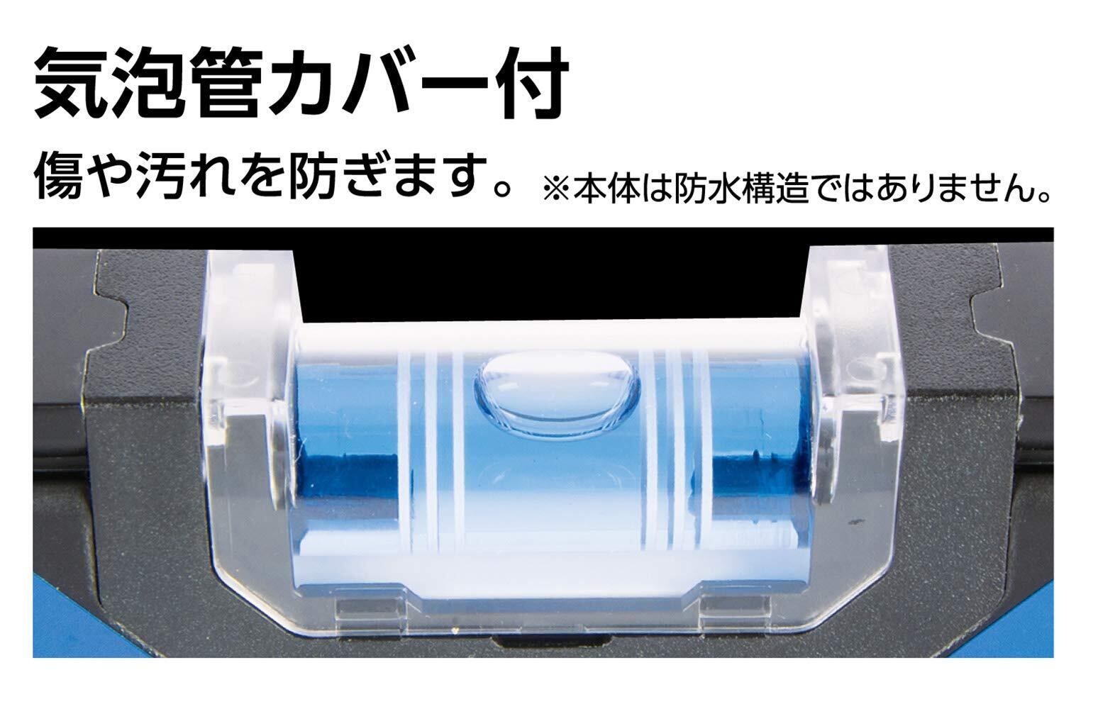 ●クリアブルーの溶液とホワイトラインで視認性の高い気泡管です。●傷や汚れを防ぐ気泡管カバー付です。●垂直気泡管付です。●ボックス型でケガキやすい形状です。●測定面はV字型溝付でパイプ測定もできます。