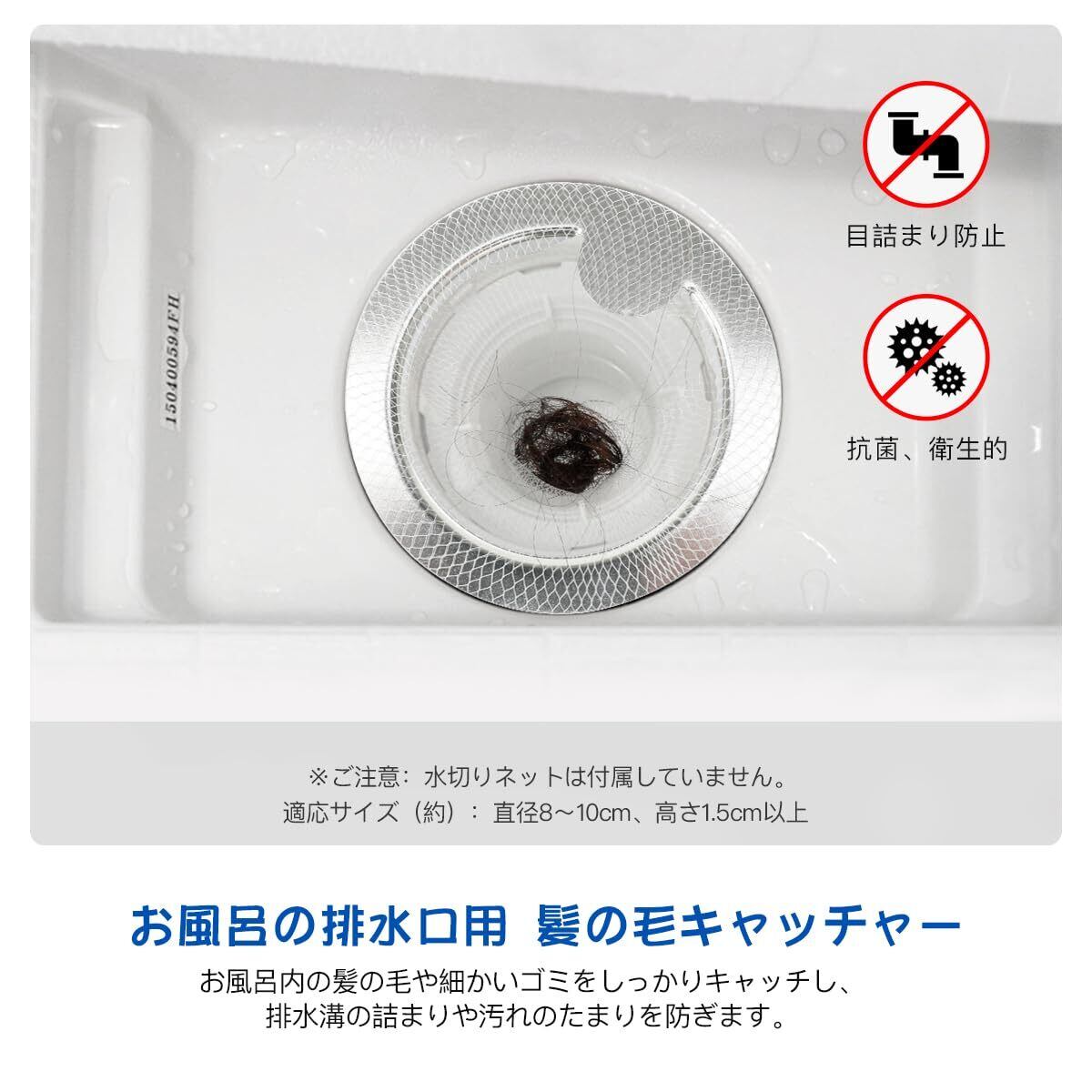 【商品仕様】内径7.7、外径10.2、高さ1.5cmです。 直径8~10cm、高さ1.5cm以上の排水口に適用。パッケージ内容:髪の毛キャッチャーX1個 (ご注意:水切りネットは付属していません)