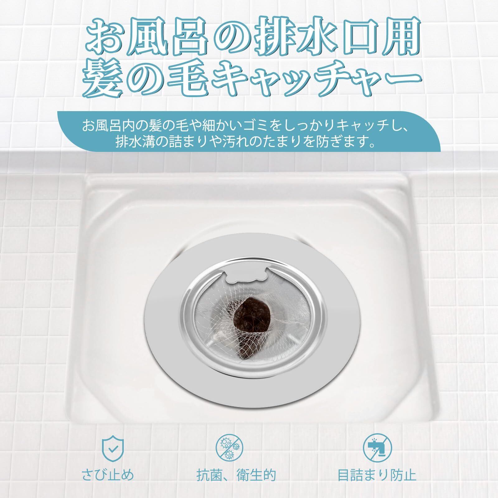 【掃除から解放】:髪の毛キャッチャーにネットを装着することで、お風呂 の髪の毛や細かいゴミをしっかりキャッチします。お掃除の際はネットを取り替えるだけなので、掃除作業が減り、面倒だった排水口のお掃除が楽になりました!