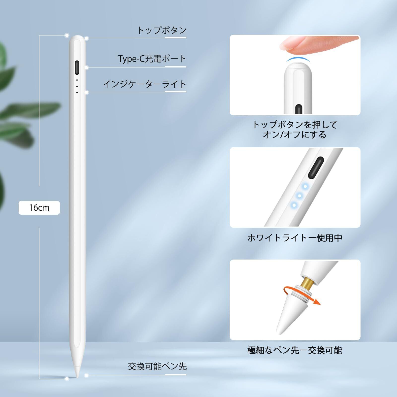 iPad 用ペンシル 15分急速充電 Mixoo iPadペンシル タッチペン パームリジェクション/高感度/磁気吸着/傾き感知 iPad Pro 11/12.9インチ、iPad Pro 11/13インチ(M4)、iPad 6/7/8/9/10/11(A16)、iPad Air 3/4/5、iPad Air 11/13インチ(M2/M3)、iPad Mini 5/6に対応
