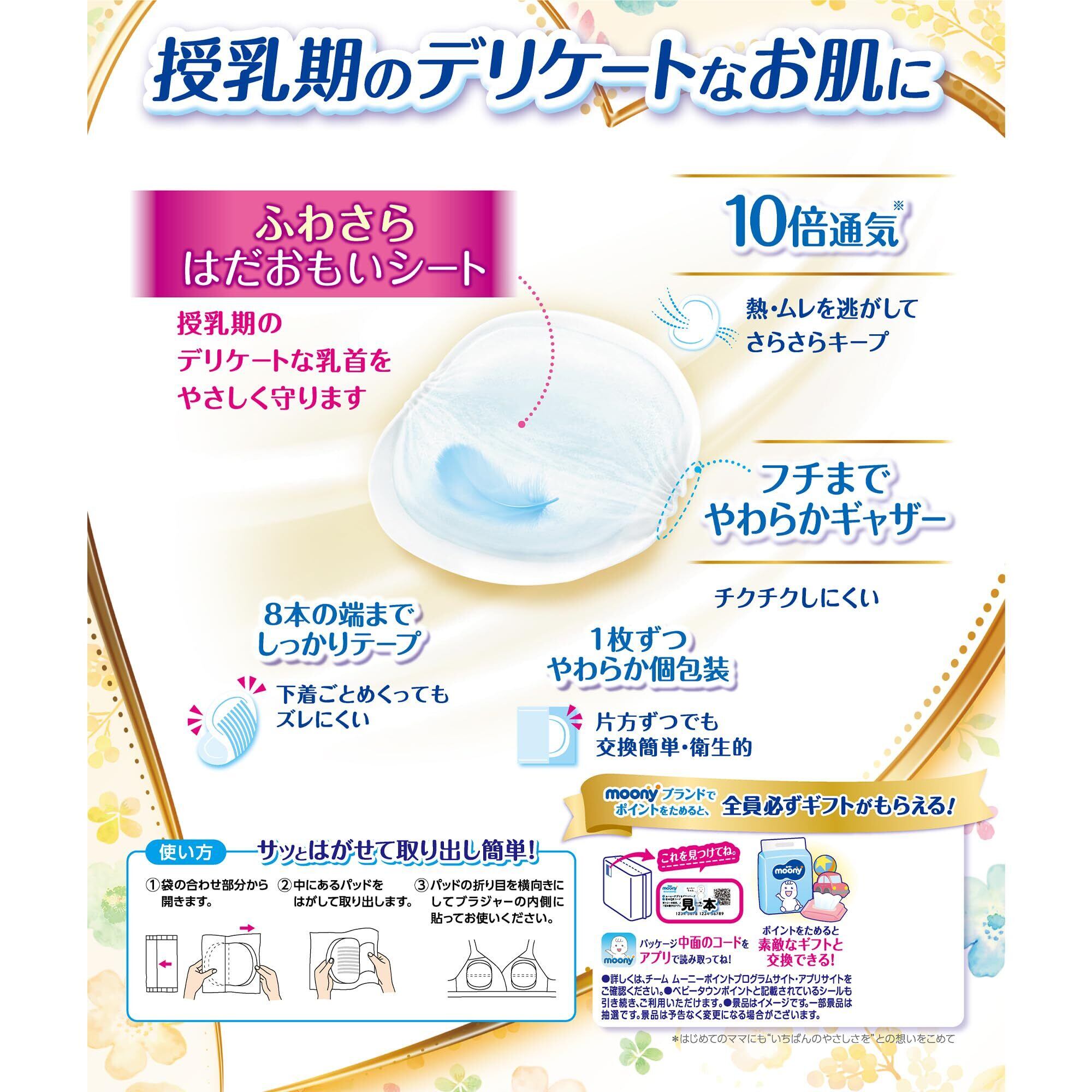 ●ふわさらはだおもいシート、乳首をやさしく守る●10倍通気でさらさらキープ●ふちまでやわらかく、授乳期のデリケートなお肌にやさしい●端までしっかりテープ搭載で、ズレにくい
