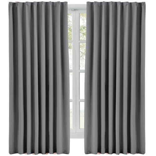Hansleep カーテン 遮光カーテン 1級遮光 厚手 断熱 防寒 防音 無地 洗濯可能 寝室 リビング 2枚組 (グレー, 幅100cm×丈178cm)