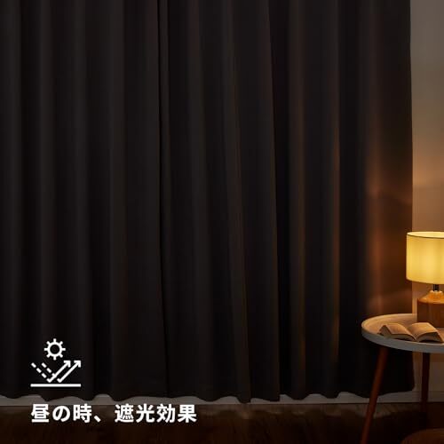 ◆【一級遮光】このカーテンは遮光度が99.99%以上,外からの光をほとんど通さないため、昼間カーテンを閉めたお部屋のなかで相手の顔の表情が分からない程度にまでお部屋を暗くできます。同じ等級であっても、カーテンの明度や色彩によって遮光の度合いが変わります。薄い淡い色は光を通しやすく、濃い暗い色は光を通しにくいです。遮光性を重視される方は濃色をおすすめします。