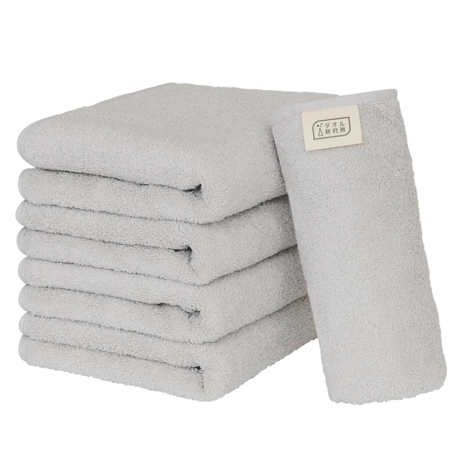 【2022最新】タオル研究所 [毎日シンプル] #001 フェイスタオル ソフトグレー 5枚セット 高速吸水 速乾 綿100% 耐久性 毛羽落ち少ない 【選べる7色】 Japan Technology