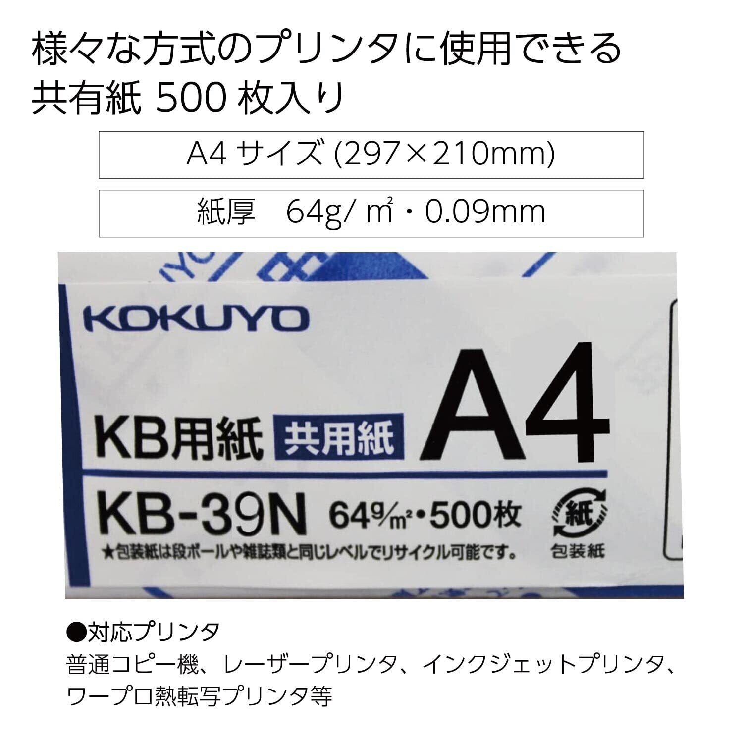 【人気商品】コクヨ コピー用紙 A4 白色度80% 紙厚0.09mm 500枚 FSC認証 KB-39N