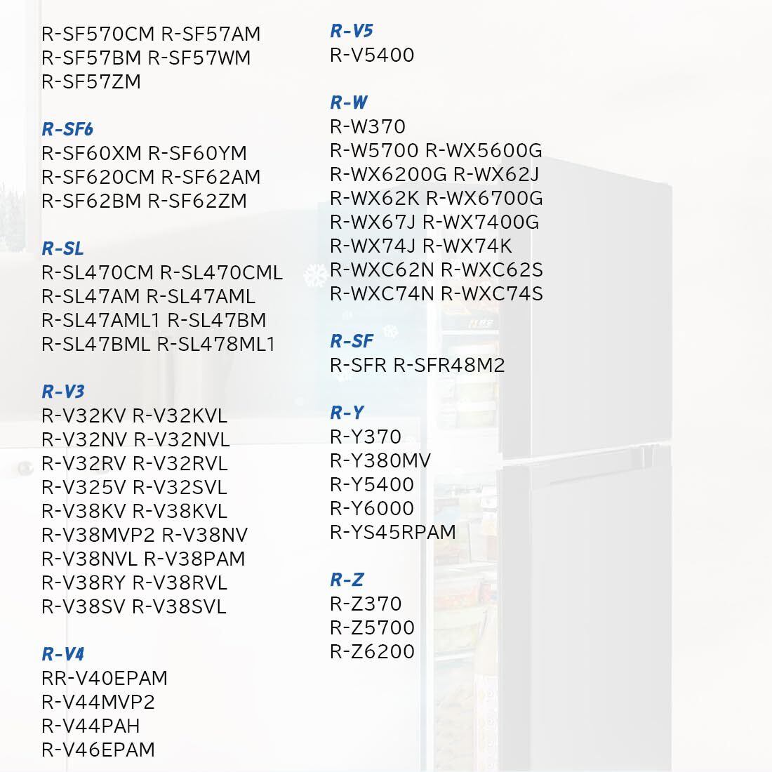 【適用機種2】R-CS44MVP2、R-CS44MVP2L、R-CS44PAM、R-CS44PAML、R-CS47EPAM、R-CS47EPAML、R-CS4800E、R-CW5200 、R-CX6700、R-D3700、R-D37NPAM、R-D37NPAML、R-D40NPAM、R-D40NPAML、R-D44MVP2、R-D44PAM、R-D46NPAM、R-D46NPAML