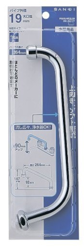SANEI(旧社名:三栄水栓製作所)腰高上向きパイプ 高さ90mmアップ 直径19mm PA23J-61X-19