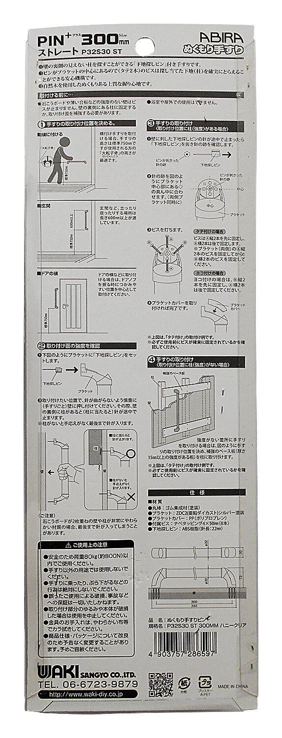 WAKI ABIRA ぬくもり手すりPIN+ プラス ストレートタイプ 300mm 直径32mm ハニークリア