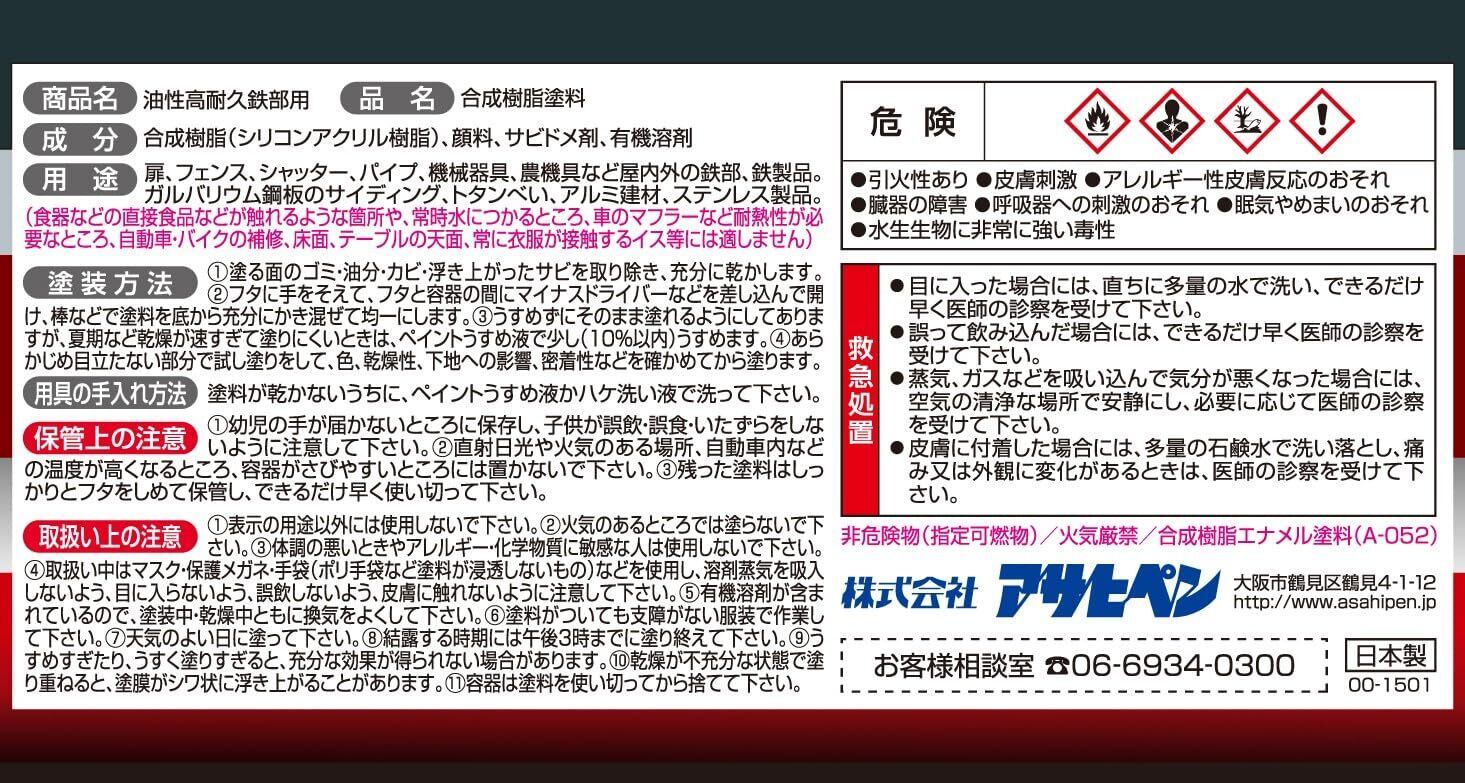 アサヒペン 塗料 ペンキ 油性高耐久鉄部用 1/5L ツヤ消し黒 油性 サビの上からそのまま塗れる 艶消し 1回塗り 高密着性 耐候性 日本製