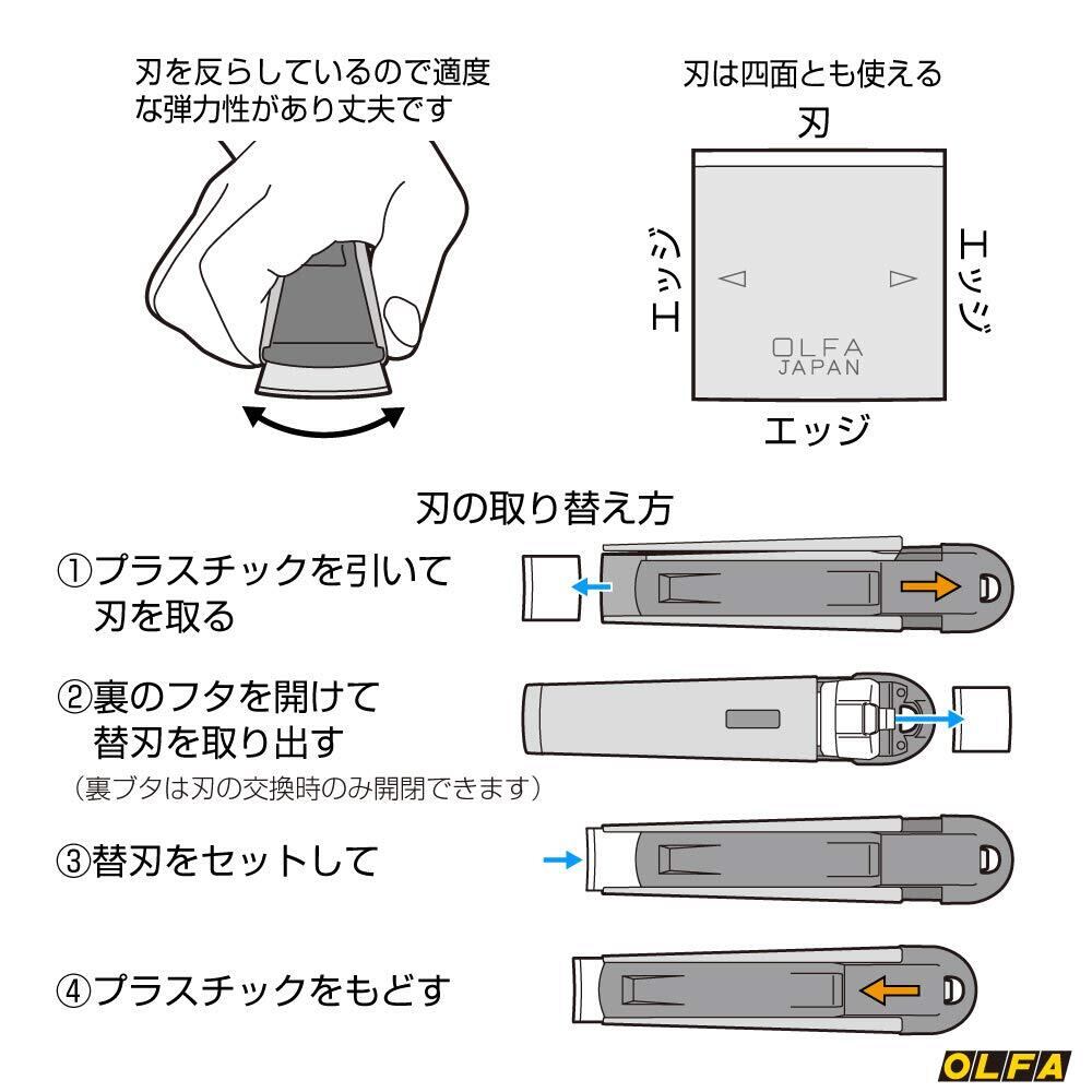・刃は1辺を研いでいます。刃をたてずに優しく削りたい時は研ぎ面ではない向きに替刃をセットしてください。