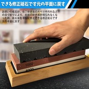 【使い勝手良好】5分から10分ほど、水に浸してから使用するので最適な、砥石面を平らになるまで前後に擦って修正します、斜め溝部が当たるように擦ります、平らになるまで擦ります、初心者でも使いやすい