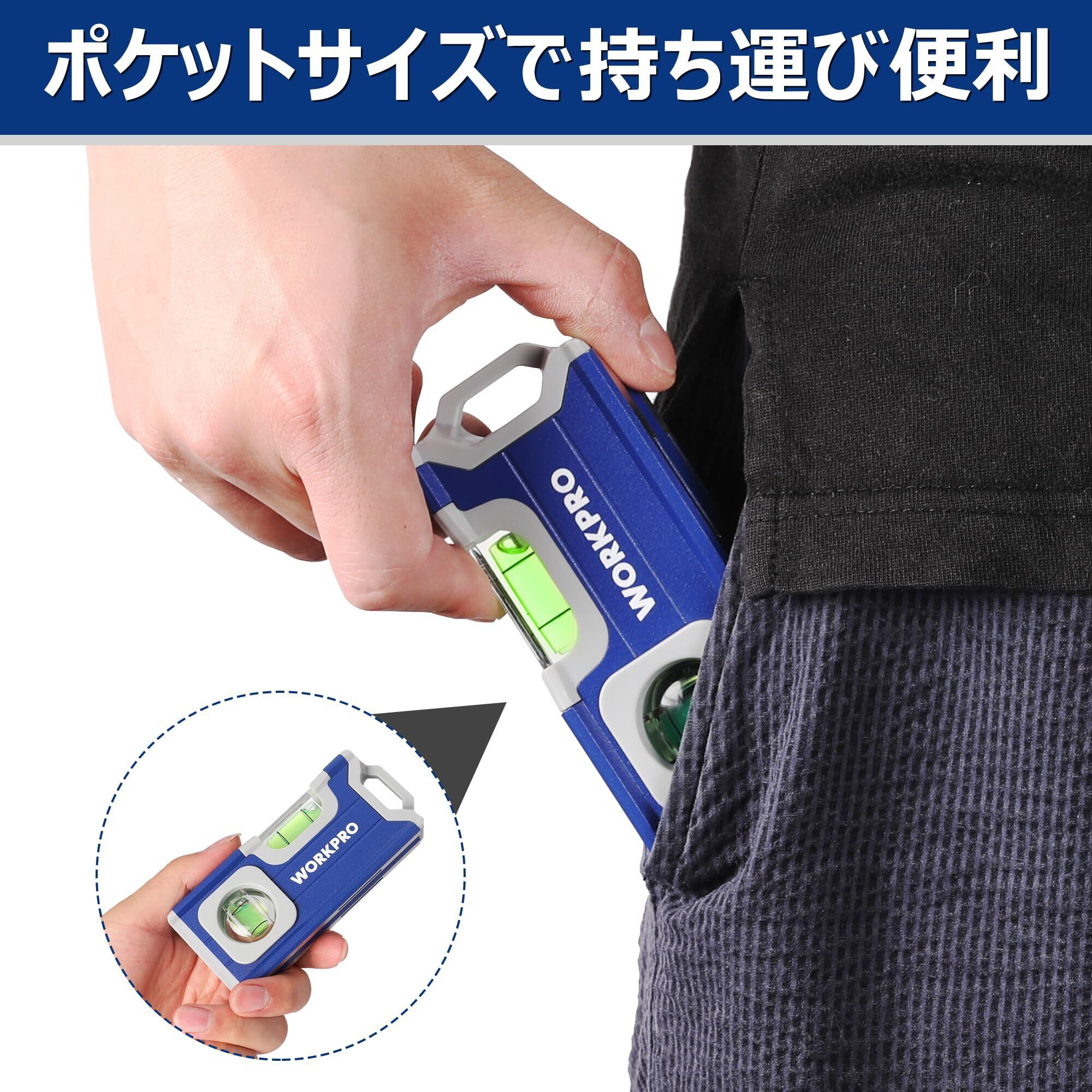 【コンパクト 持ち運び便利】WORKPROボックスレベルはコンパクトなサイズで作業時にポケットに入れることができるため、持ち運びや保管が簡単です。DIY初心者も職人も欠かせないツールです。