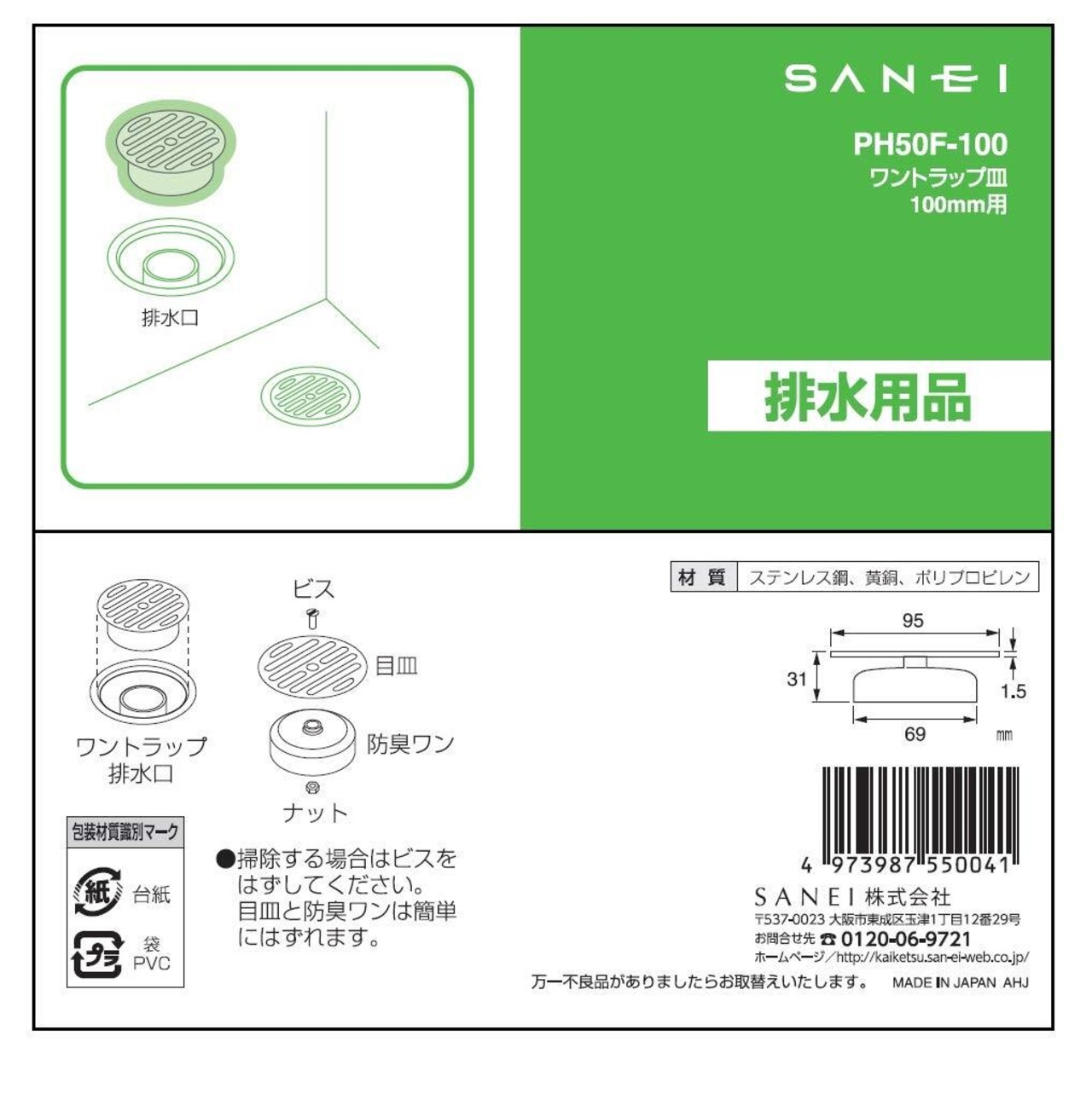 SANEI(旧社名:三栄水栓製作所)排水部品 ワントラップ皿 目皿直径95mm 防臭 防虫 ステンレス PH50F-100
