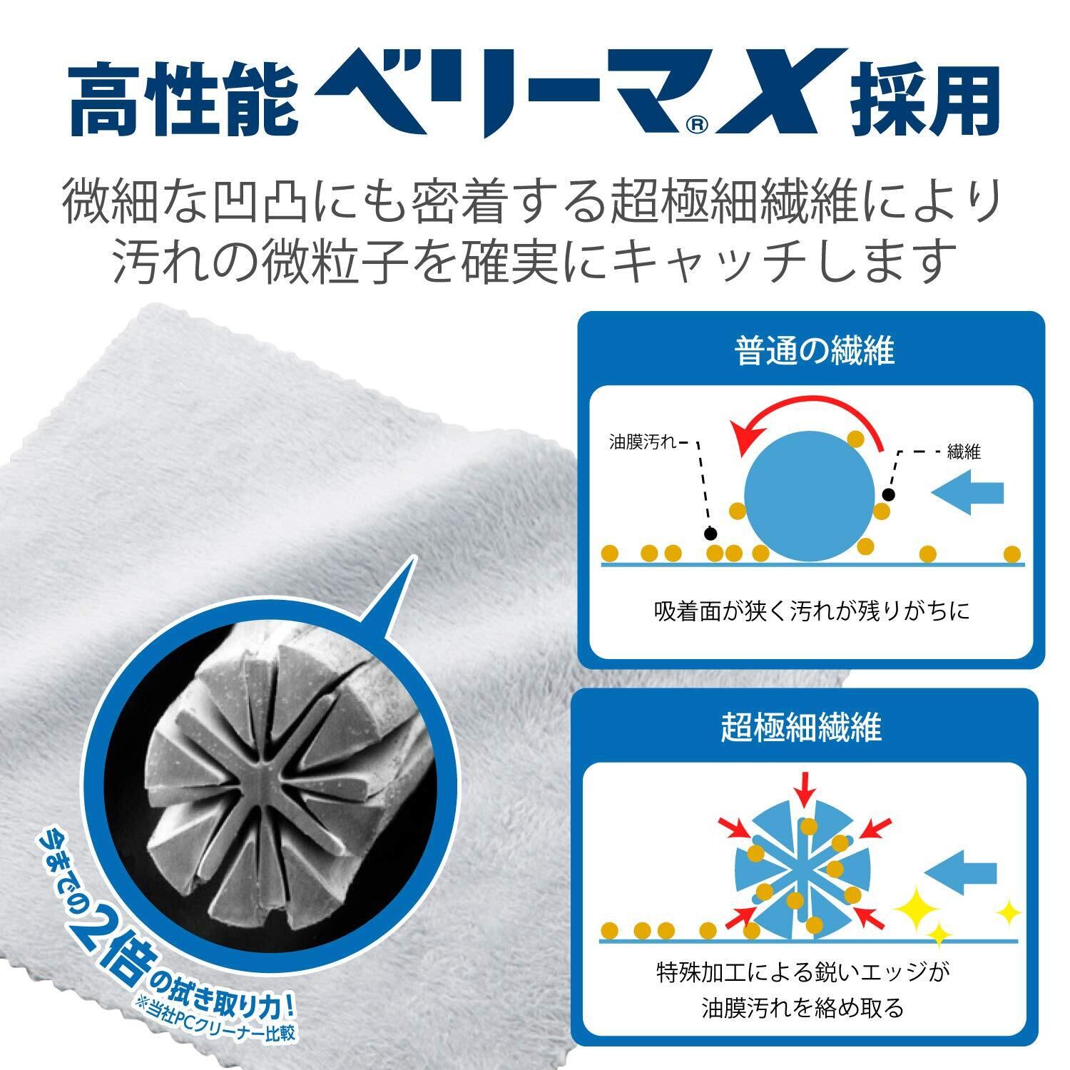 液晶画面に付着した指紋や皮脂、本体にたまったホコリなどのしつこい汚れを一気に拭き取るドライタイプのクリーニングクロスです。