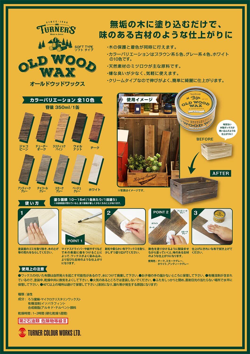 ターナー色彩 オールドウッドワックス 350ml アンティークグレー OW350006