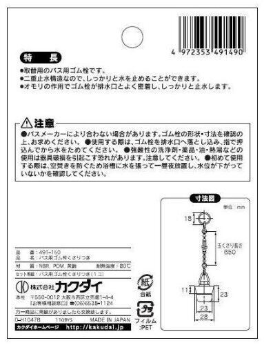 【在庫セール】カクダイ(KAKUDAI) バス用ゴム栓くさりつき 28×23 491-150