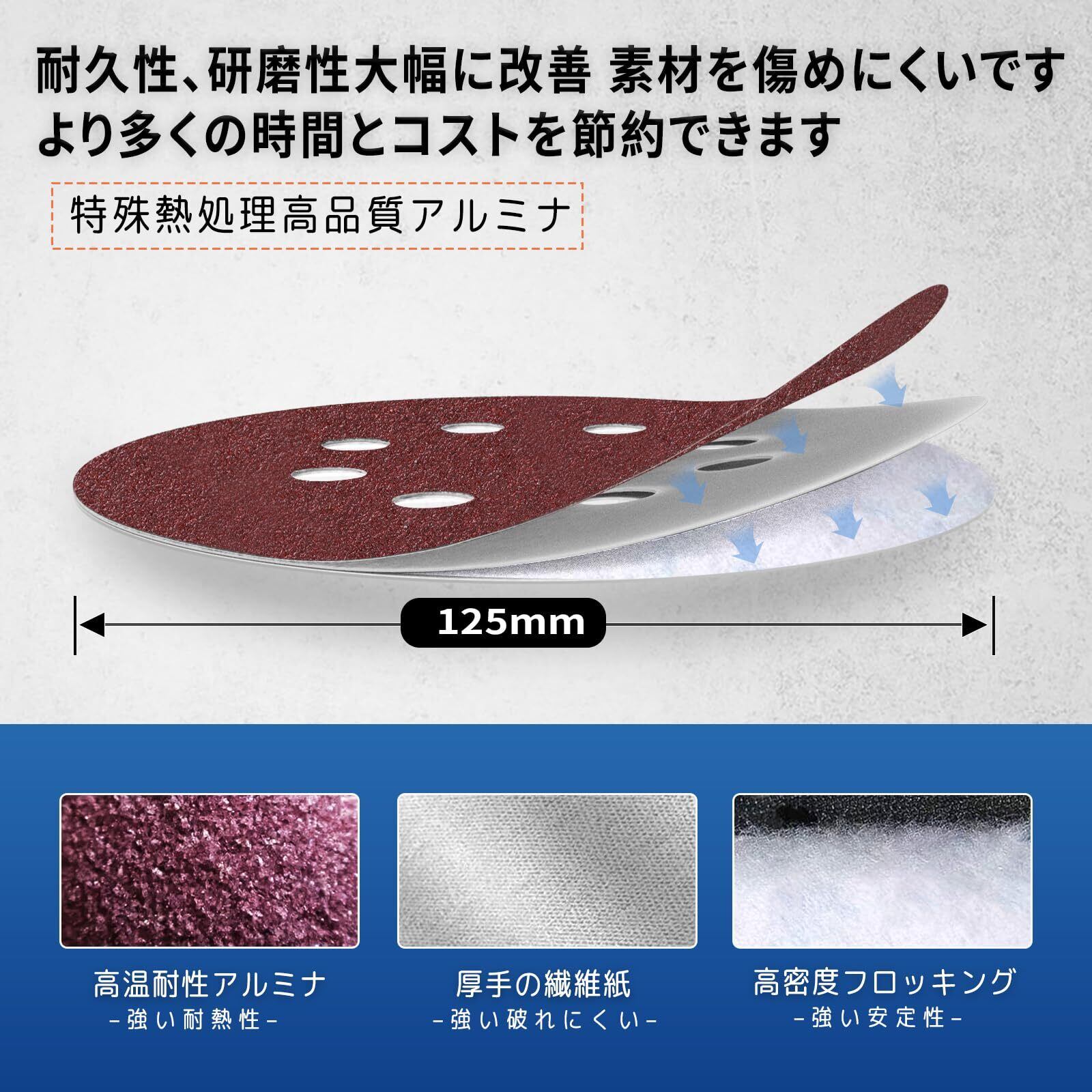 【研削効率がアップします】特殊熱処理高品質アルミナサンディングディスク 耐久性、研磨性大幅に改善 素材を傷めにくいです 効率的で長持ちするディスクペーパーにより、より多くの時間とコストを節約できます ダメージしにくいランダムサンダー