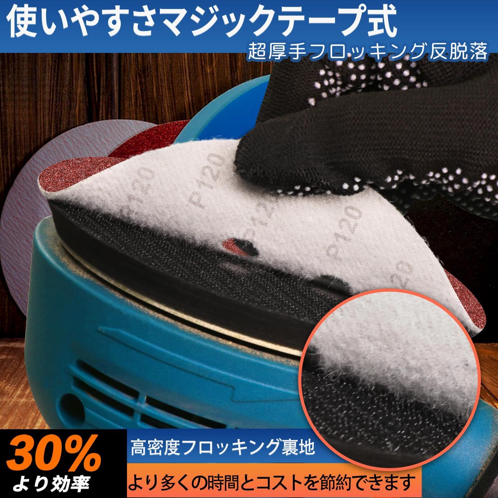 【使いやすさマジックテープ式】脱着が簡単です 密着性に優れ、高速で耐久性のあるサンディングを提供することで、作業時間を節約し、集塵用に8つの穴を事前に打ち抜きます 穴の位置も正確でした目詰まりしにくいです