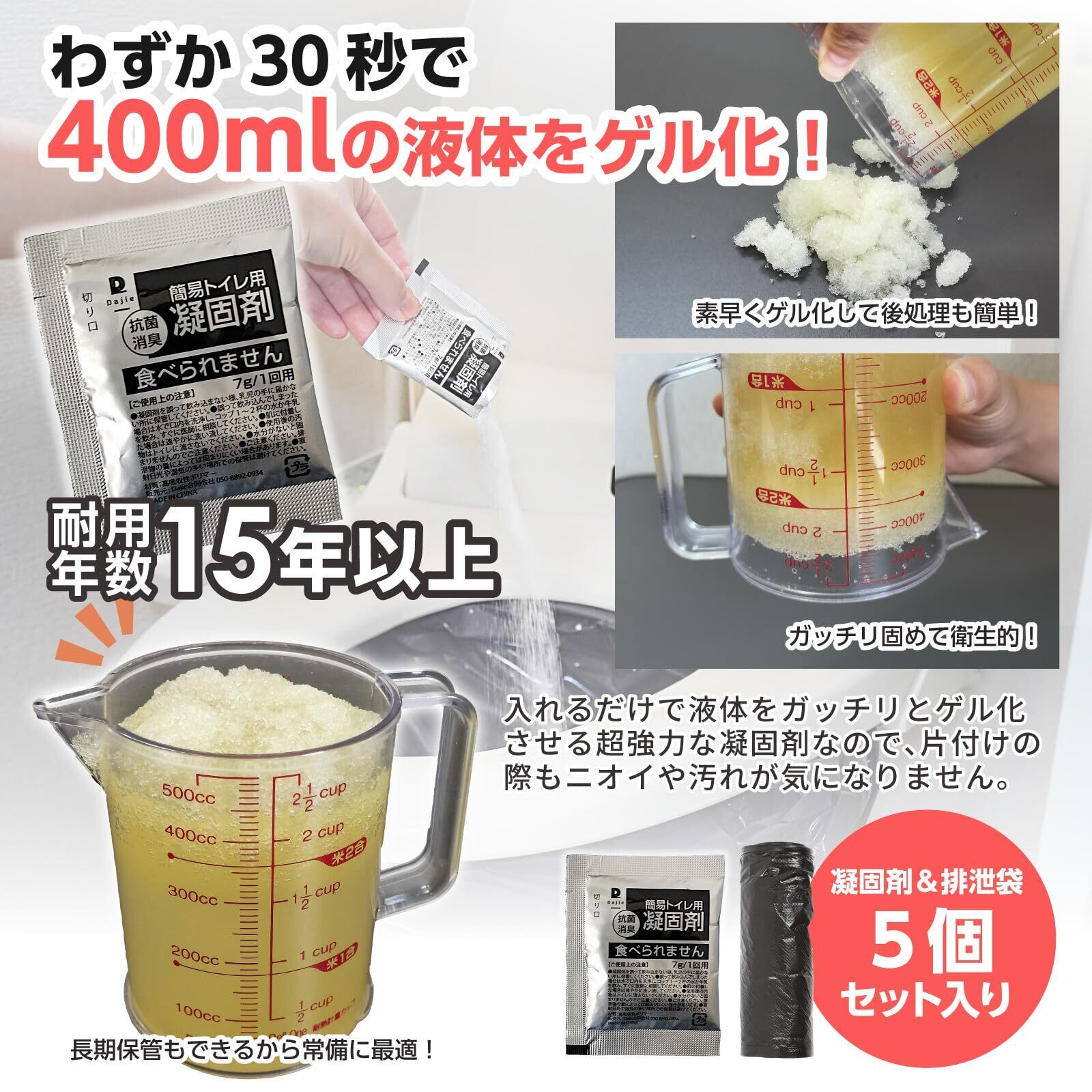 セット内容】折りたたみ簡易トイレ本体、排便袋&凝固剤×5セット、収納袋 【サイズ】W32cm×D27.5cm×H29cm(折りたたみ時の高さ11.5cm)
