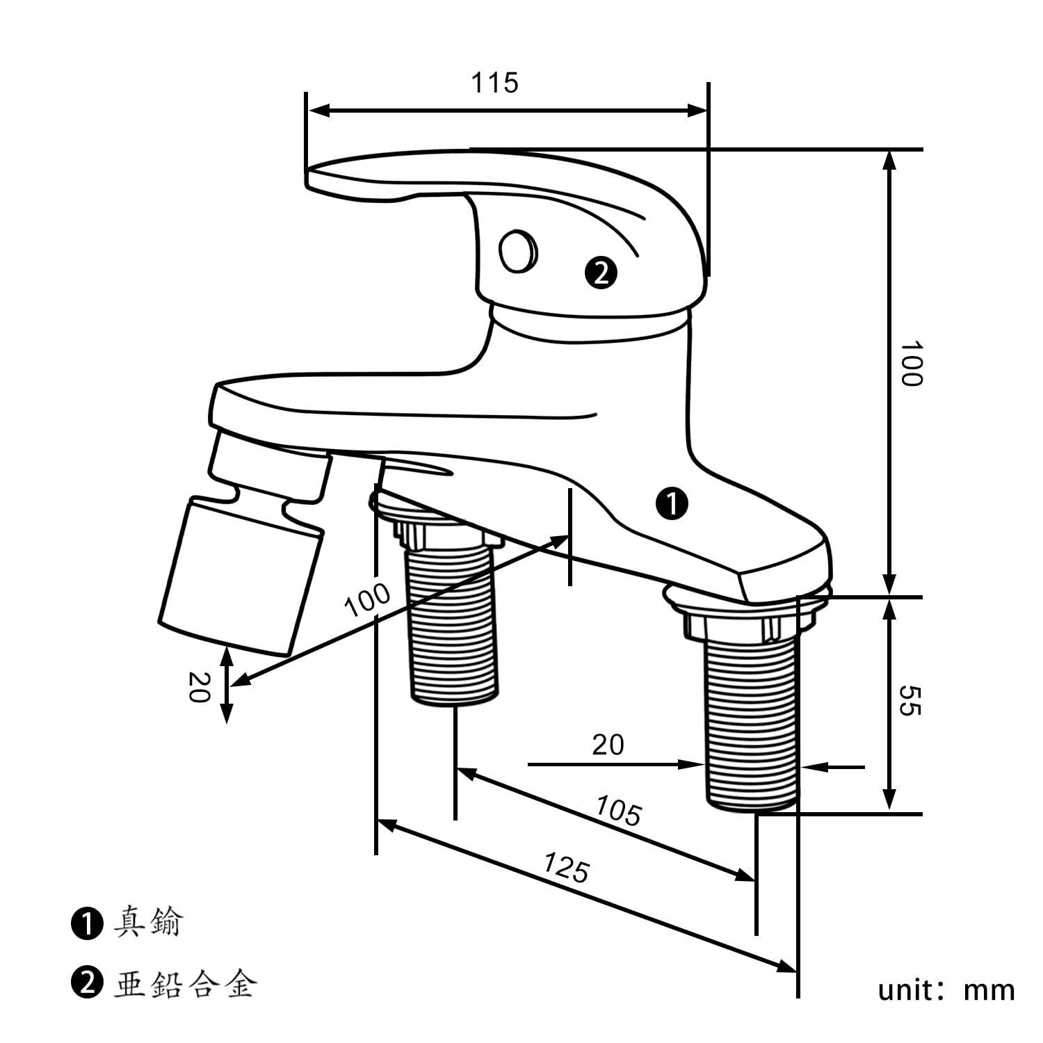 ツーホール式: この2穴シングルレバー混合栓は、2つの穴の間隔が10.2 cm前後の洗面台に適していますので、購入前に穴の間隔を確認してください。賃貸アパート、古い家、学校、病院などに適しており、非常にコストパフォーマンスが高いです
