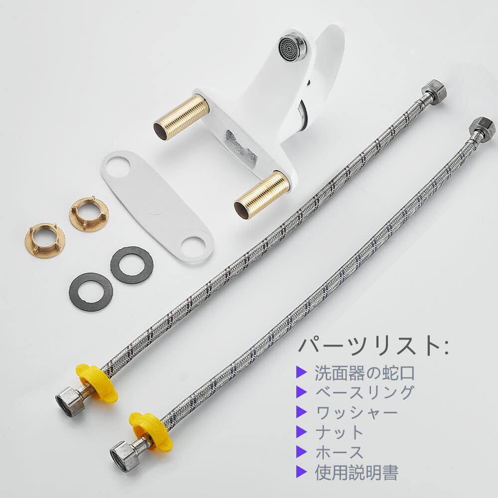 【特価商品】KOLERTHR 洗面水栓 洗面用混合栓 台付2穴 蛇口 洗面所水栓 ツーホール式 シングルレバー混合水栓 冷 温 切り替え 水栓金具 取り付けホース付き 真鍮製 (ホワイト)