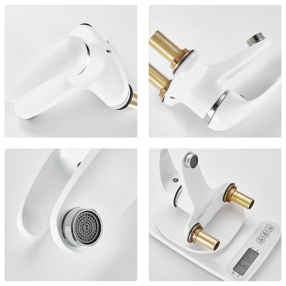 KOLERTHR 洗面水栓 洗面用混合栓 台付2穴 蛇口 洗面所水栓 ツーホール式 シングルレバー混合水栓 冷 温 切り替え 水栓金具 取り付けホース付き 真鍮製 (ホワイト)