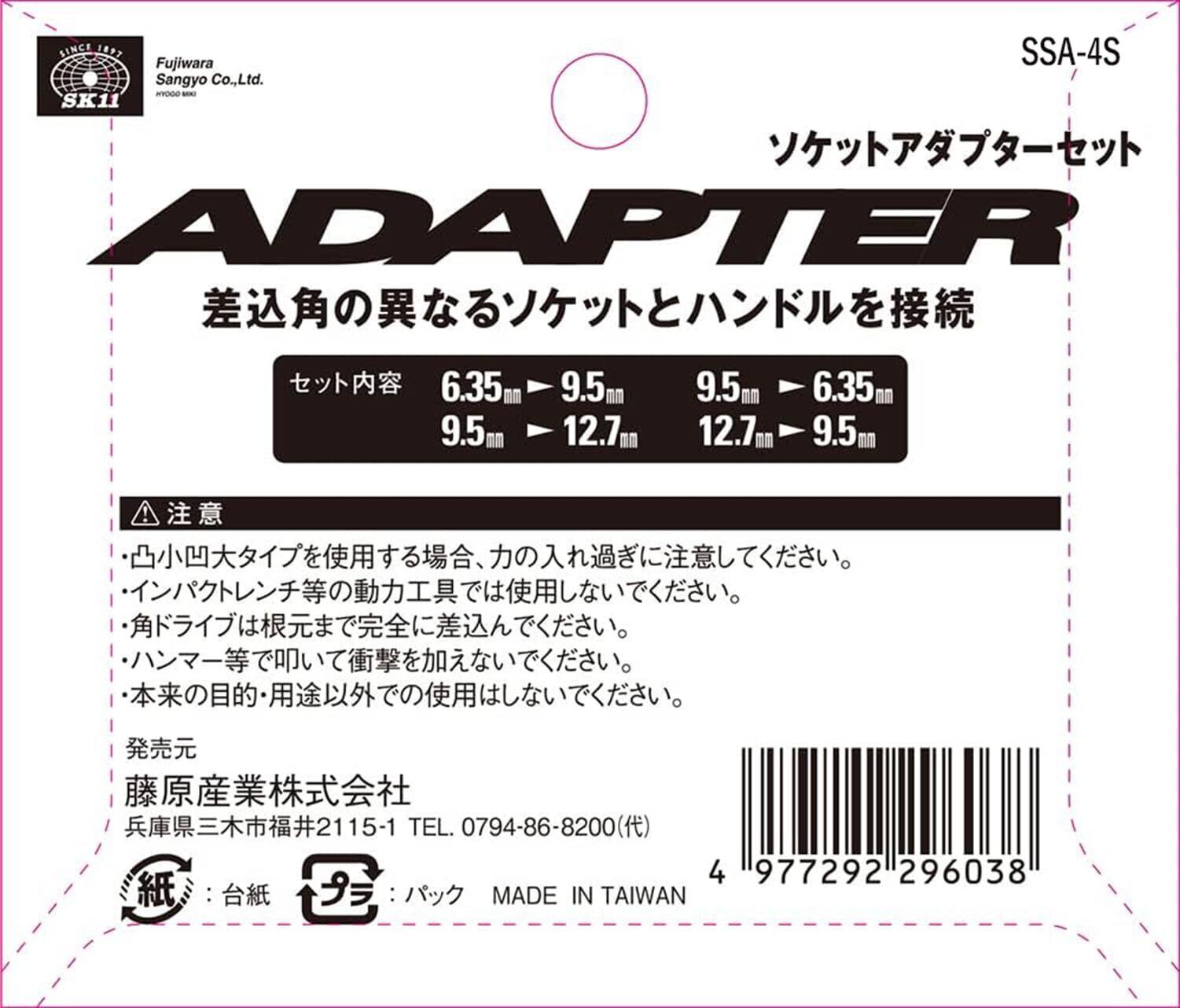 SK11(エスケー11) ソケットアダプターセット 4pcs 差込角の異なるソケットとハンドルの接続 SSA-4S