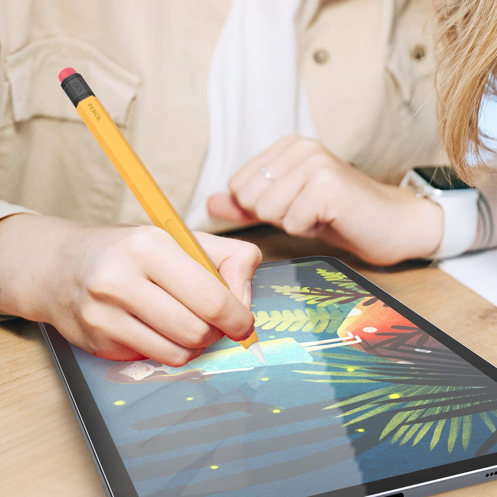 AhaStyle Apple Pencil Pro&Apple Pencil 第二世代用シリコン保護ケース 鉛筆レトロデザイン 柔らかなシリコン材質 Apple Pencil Pro&Apple Pencil 第二世代のみに適用 ワイヤレス充電対応 (イエロー)