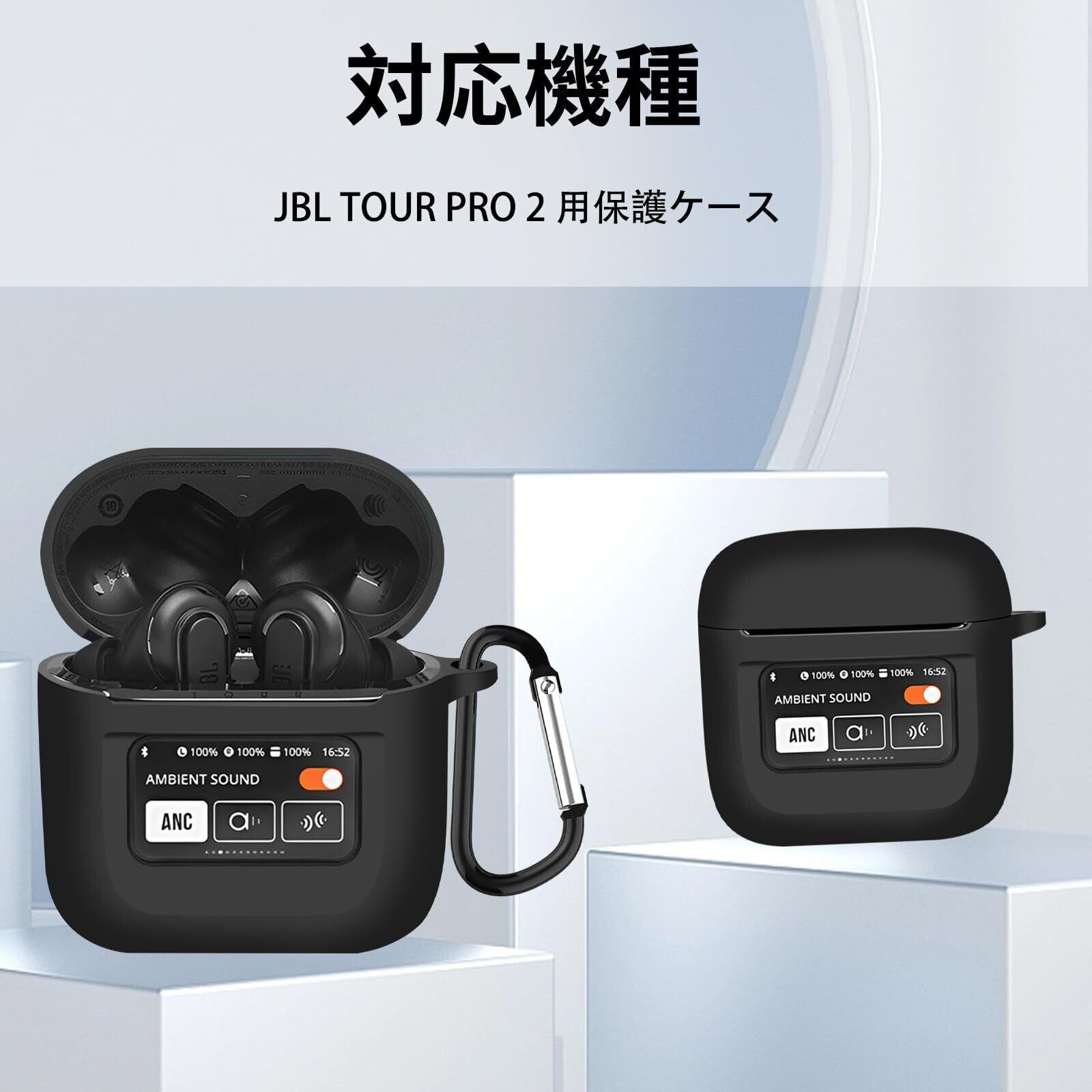 YAODLE JBL TOUR PRO 2 ケース 対応 JBL TOUR PRO 2 専用保護カバー 液状シリコン保護ケース 耐衝撃性 防水防塵 軽量小型 紛失防止 装着充電可能 男女兼用 カラビナ付き(ブラック)