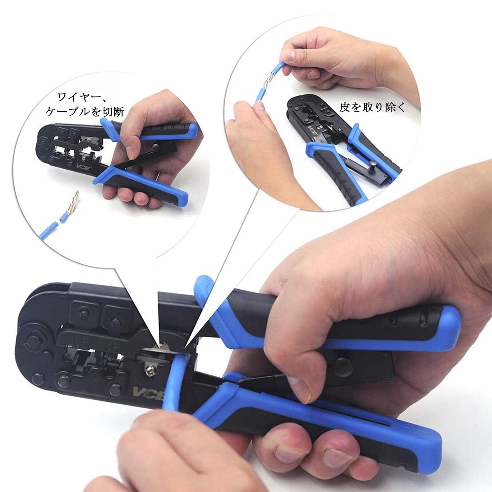 VCE GJ668 RJ45 かしめ工具 皮剥く 端子圧着 多機能 ラチェット式 RJ45 RJ12 RJ11 LANケーブル 電話線対応