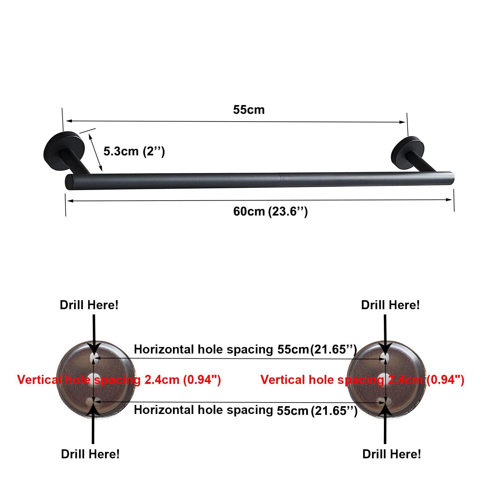 【新着商品】KWQKEMタオルバー ステンレス丸座 タオル掛け おしゃれ タオルハンガー アイアンバ ー 壁掛け ネジ付き タオルホルダートイレ 浴室 バスルームアクセサリー キッチン用 省スペース (ブラック, タオルバー60cm) | allstore3
