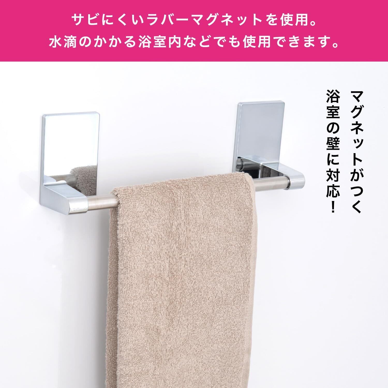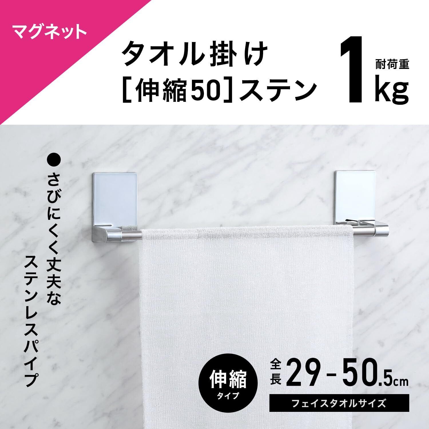 【2022最新】ラバーマグネット 伸縮 タオル掛け ステンレス 伸縮幅 29~50.5cm(干幅24~45.5cm) 耐荷重1kg フェイスタオルサイズ