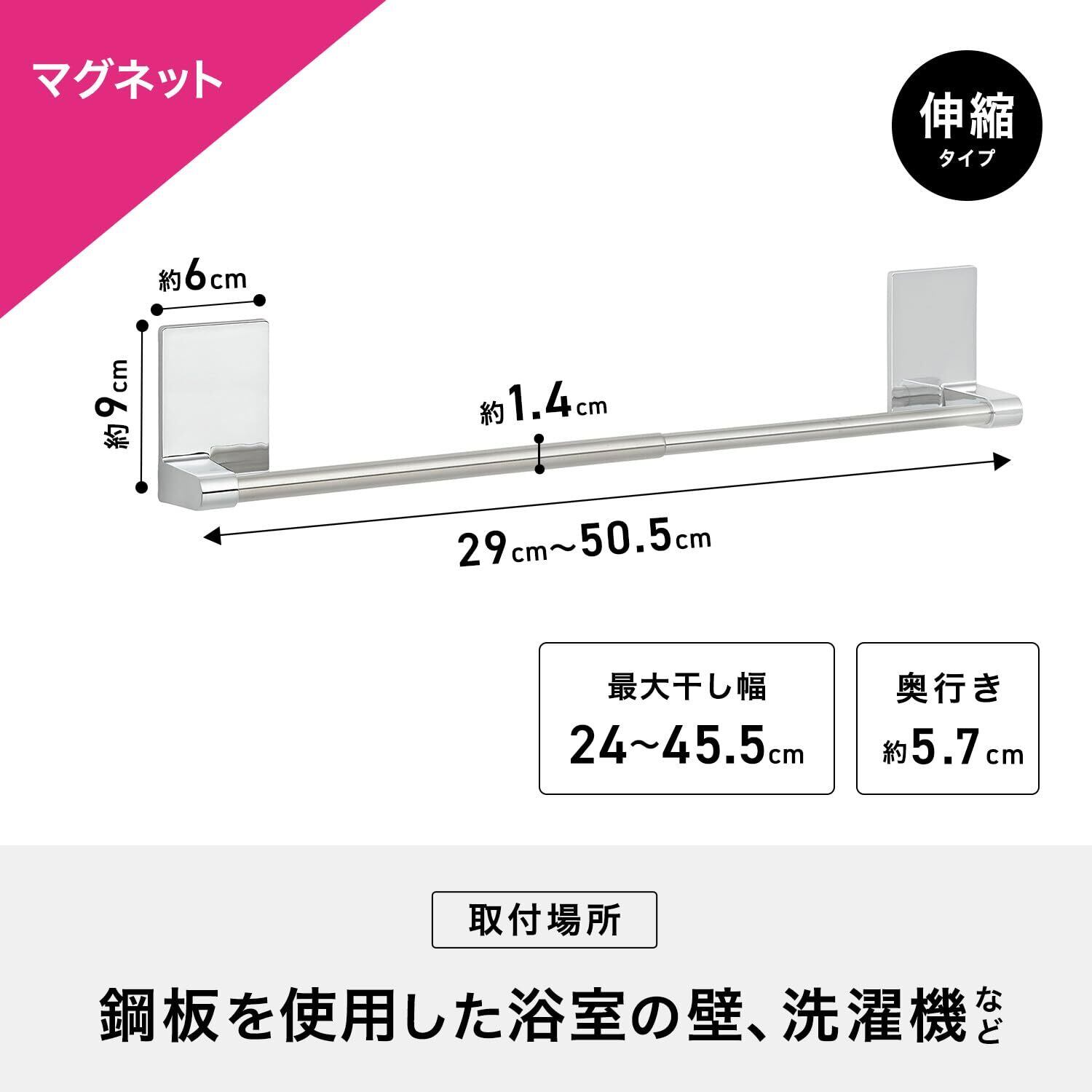 ラバーマグネット 伸縮 タオル掛け ステンレス 伸縮幅 29~50.5cm(干幅24~45.5cm) 耐荷重1kg フェイスタオルサイズ