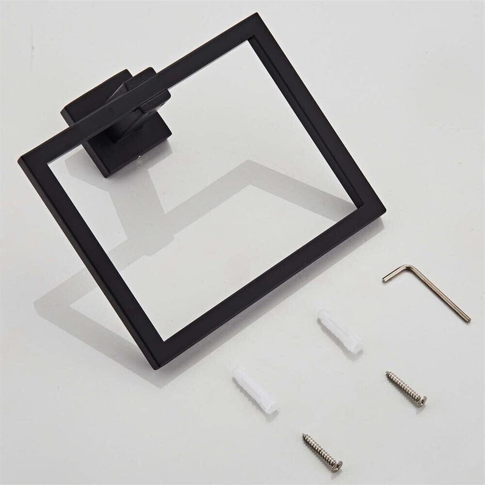 KWQKEM タオル掛けリング ステンレス タオルかけ おしゃれ タオル用リング 壁付け タオルホルダー タオルハンガー シンプルモダン 収納 トイレ 洗面所 キッチン用 ネジ付き ブラックSquare Towel Ring Black Hand