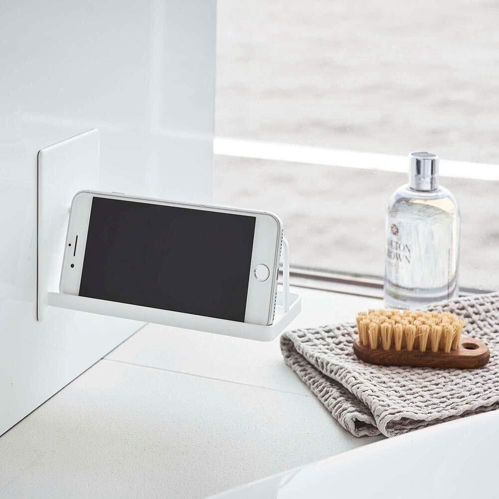 山崎実業(Yamazaki) マグネットバスルーム スマートフォンスタンド ホワイト 約W8XD17XH12cm タワー スマホスタンド 滑り止め付き 4972