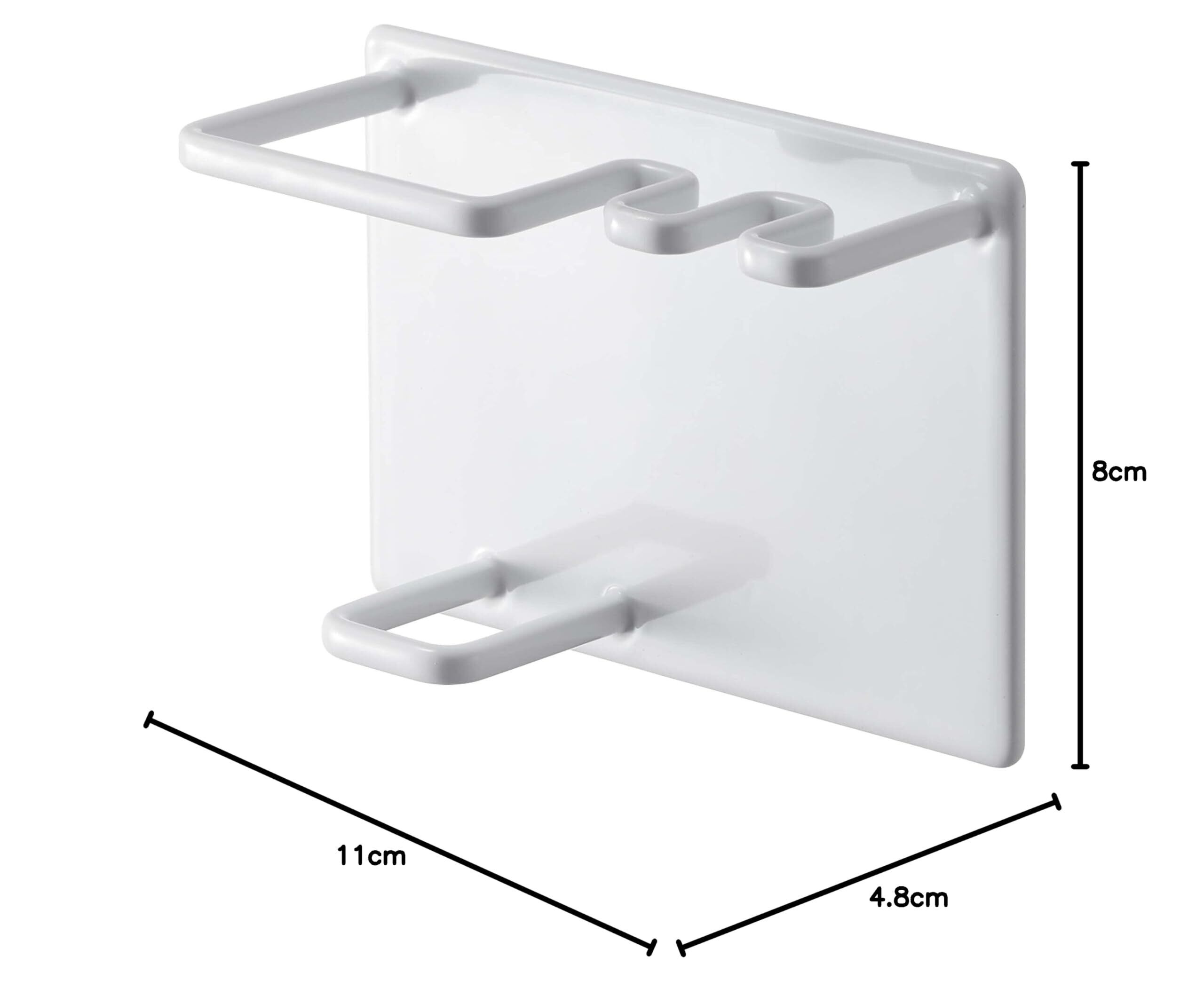 ■サイズ:約11×4.8×8cm、■素材:本体/スチール(ユニクロメッキ+粉体塗装)・マグネット,滑り止め/シリコーン、■耐荷重:約750g、■取り付け可能な壁面:マグネットが付く平らな面、■カラー:ホワイト