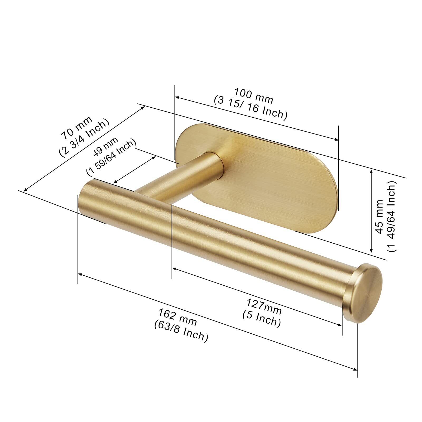 YUET トイレットペーパーホルダー 壁取り付け、3M 粘着式トイレットロールホルダー SUS 304 ステンレススチール トイレットペーパーホルダー バスルーム用 ドリル不要 (ゴールド)