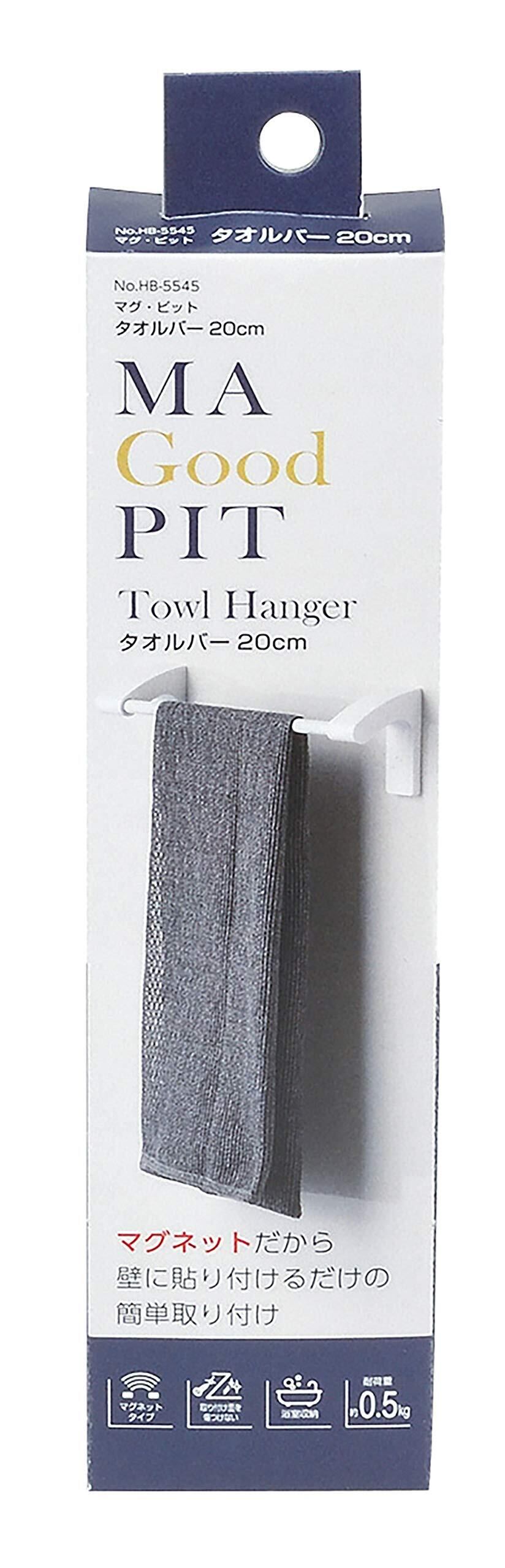 パール金属 タオルバー20cm マグネット 磁石 収納 浴室 キッチン 日本製 ホワイト マグ・ピット HB-5545