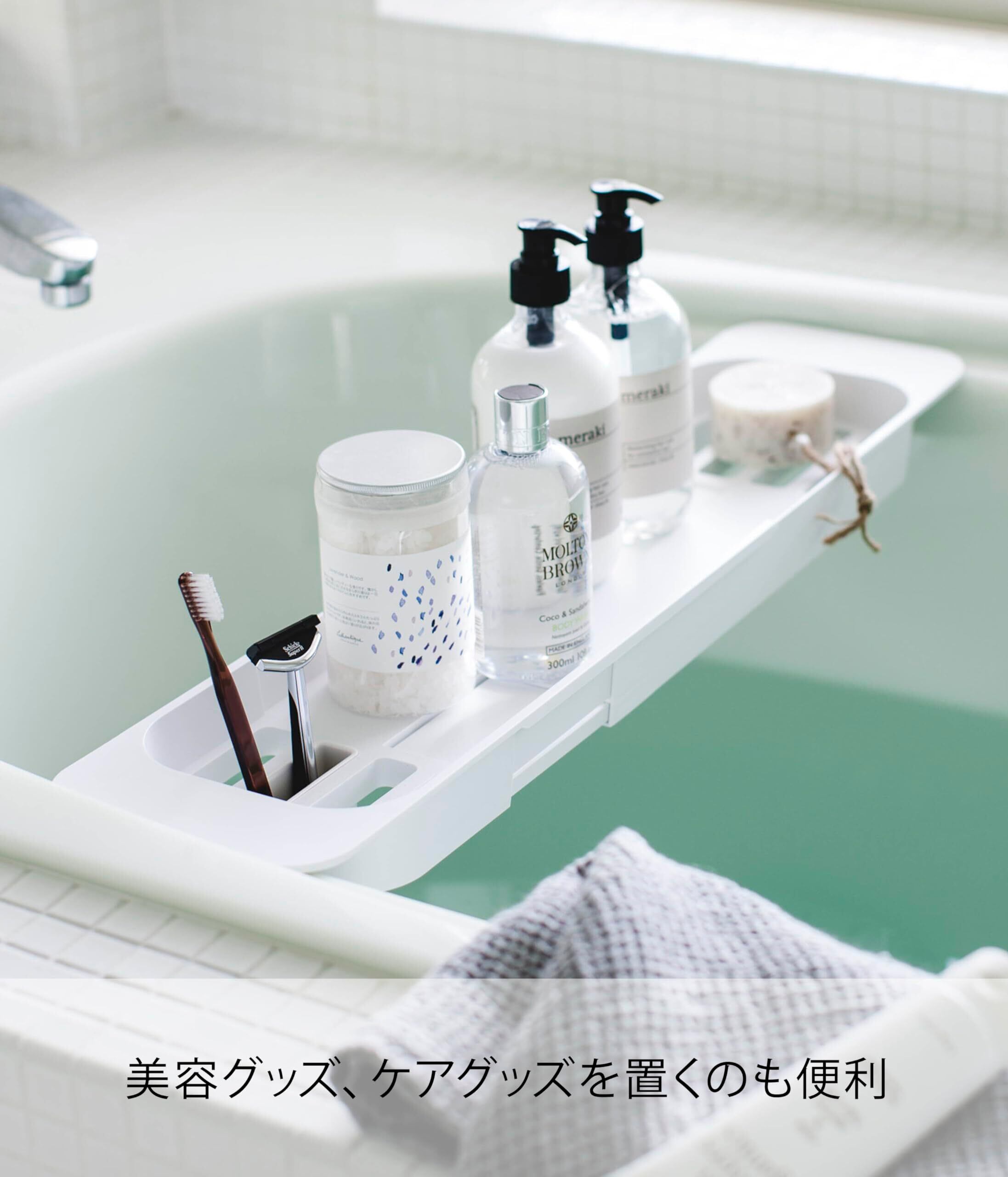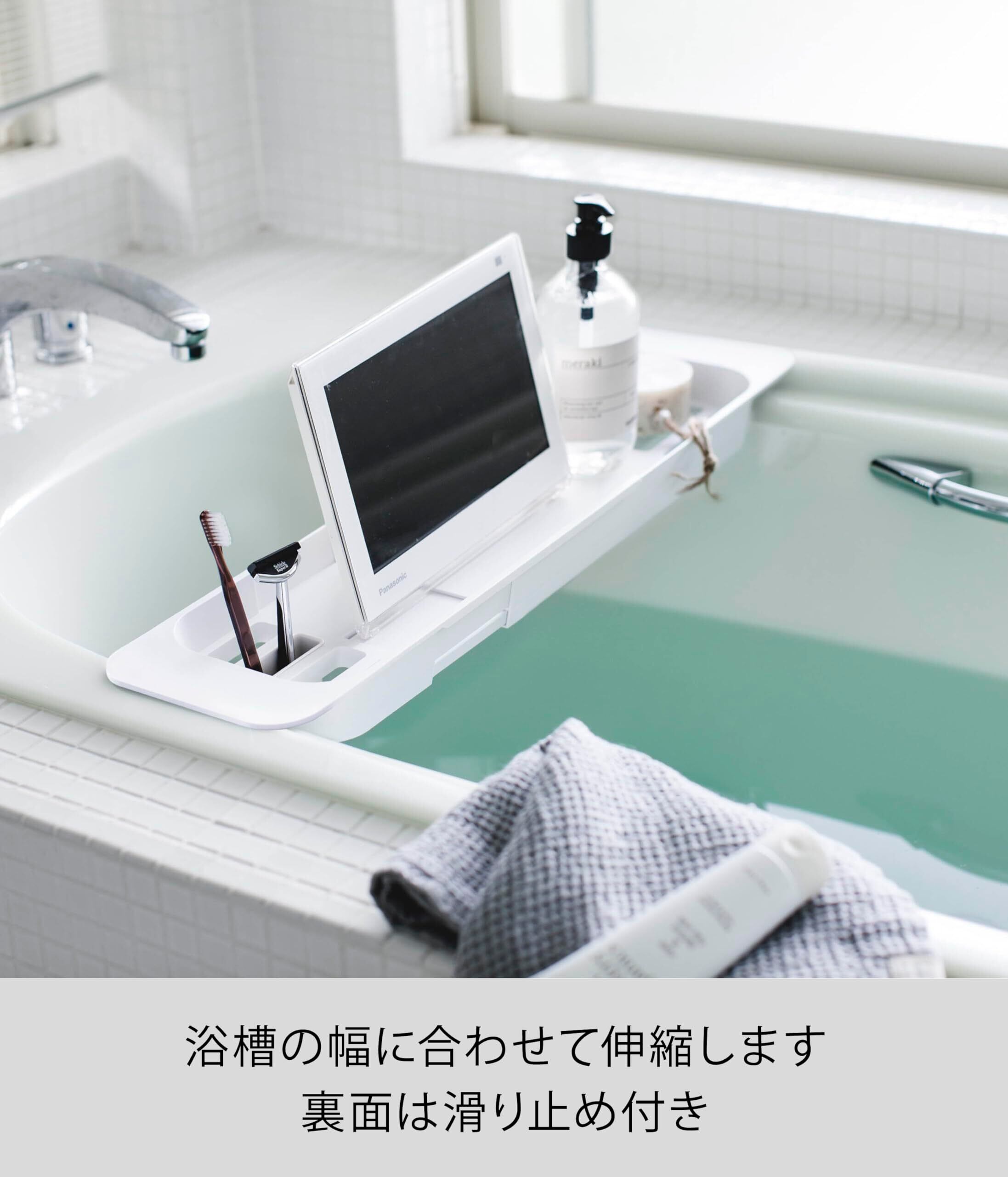 山崎実業(Yamazaki) 伸縮 バスタブ トレー ホワイト 約W57.5-75XD15.5XH4.5cm タワー 浴室用ラック バスラック 3546
