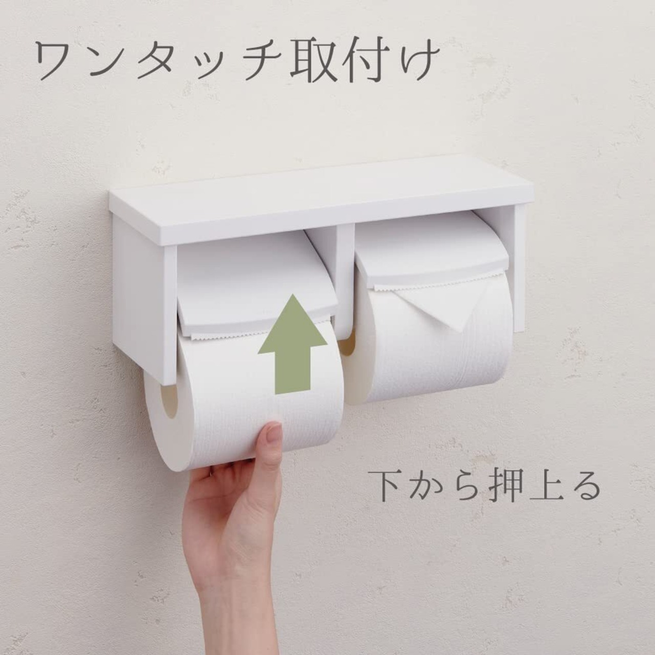 ぺーパーを2つ収納できるダブルタイプ。ペーパーの減りが早い大家族や在宅時間の長いご家庭にもおすすめです。シングルロールとダブルロールの使い分けや、ストックとしてご使用いただけます。