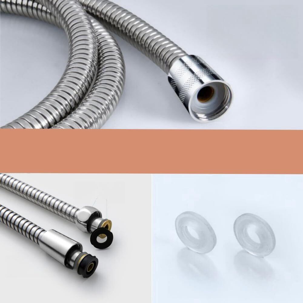 汎用ホース:コネクタはほとんどのシャワー装置の1/2”端に適しており、任意の1/2ポートにねじ込むだけで、ゴムパッキンのシールが良好で、漏れがなく、両端のゴムパッキンのシールがより緊密で、接続が容易である。
