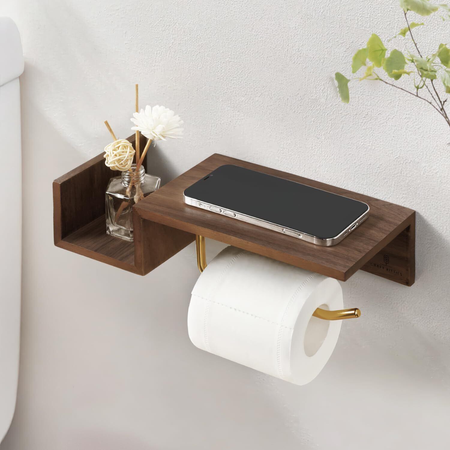 CRAFT KITTIES(クラフトキティ) 紙器巻 木製 トイレパーホルットペーダー おしゃれ 棚付き 取り付け簡単 二式取り付け方法 (ウォト材)