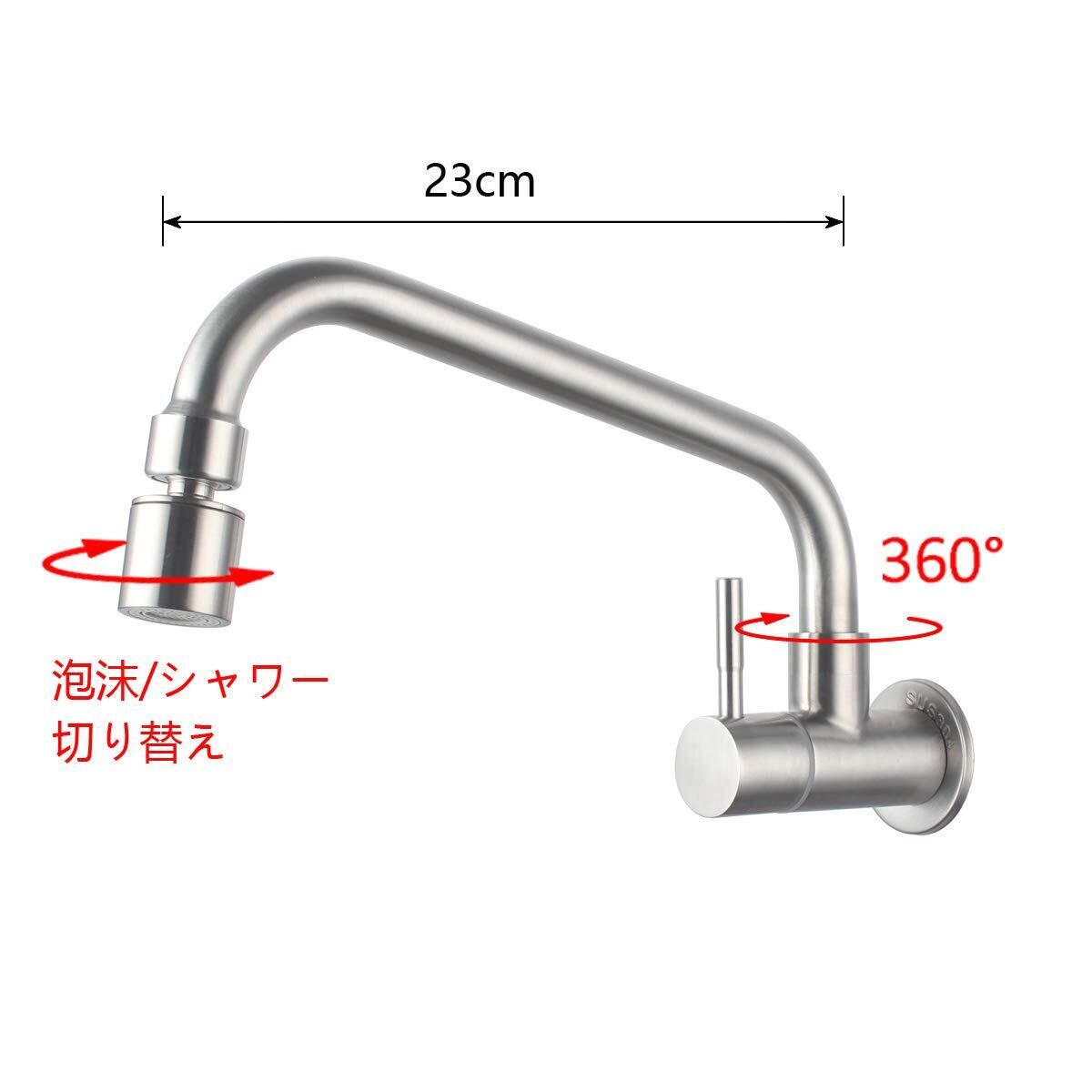UMANYI キッチン蛇口 キッチン用水栓 洗面蛇口 シングルレバー 単水栓 横水栓 節水 首振り 360度回転 泡沫 シャワー切り替え 壁付け ステンレス製 SSDL06