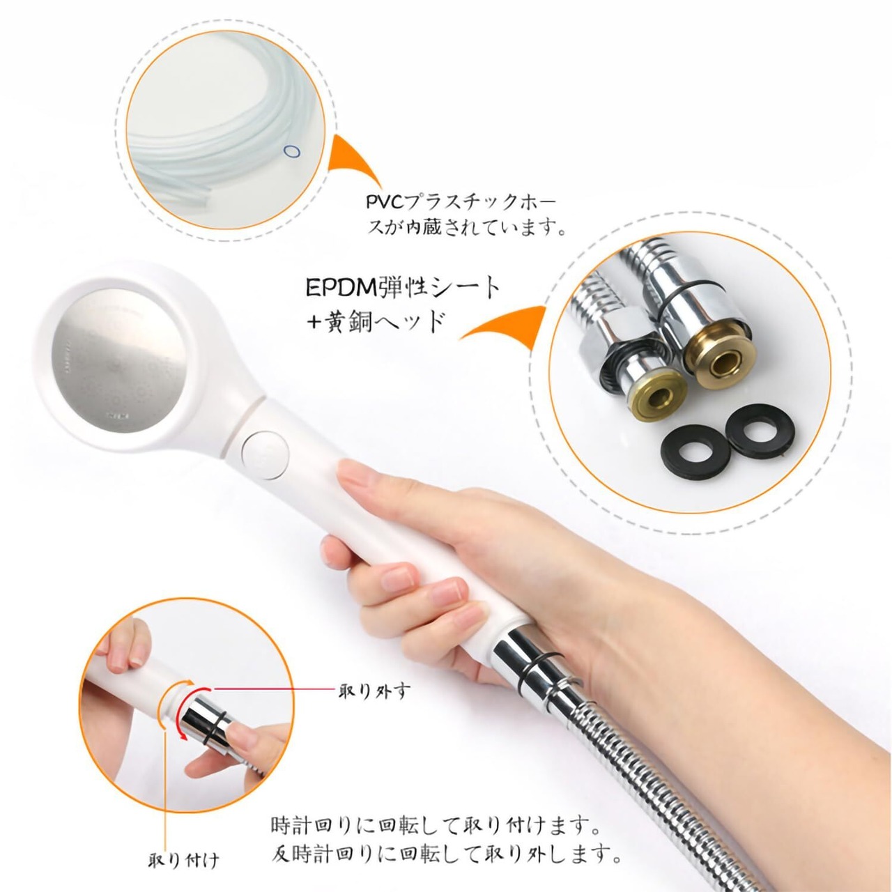 [360°自由回転] シャワーヘッドの接続部は360°自由回転できるため、使用中の絡み合いを防ぐことができます。
