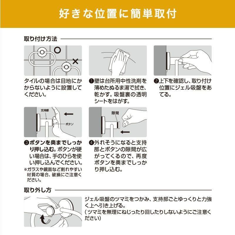 すごい吸盤を採用!やわらかいジェルが、浴室内の細かい凹凸・シボ面にもしっかり密着する吸盤です。
