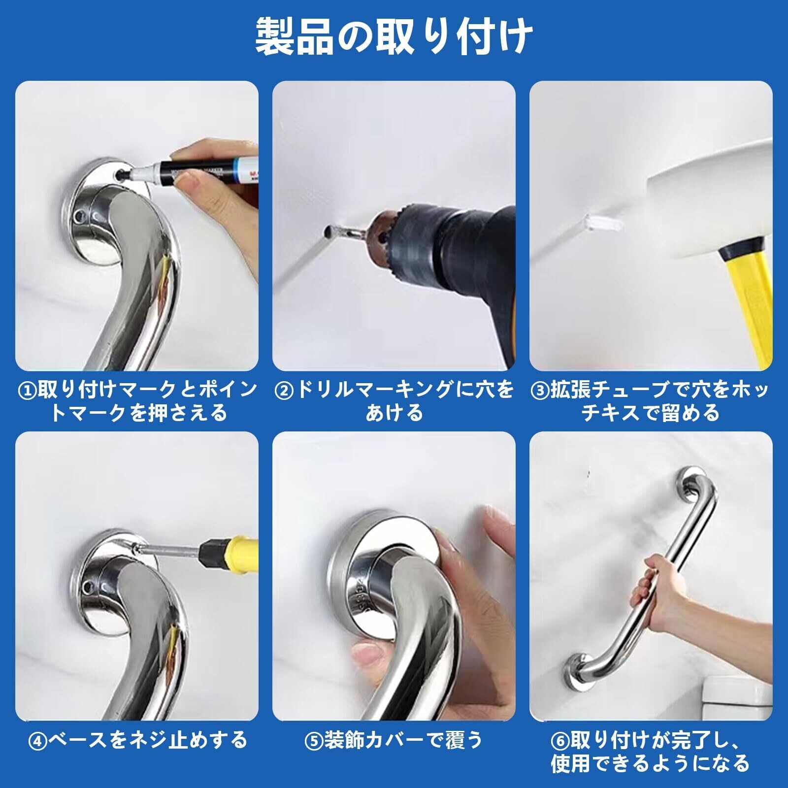 RILIHII ステンレス浴室手すり 4PCS 2.5CMx40CM 屋内/屋外玄関手すり 階段手すり 安全ハンドル 取り付け簡単 高齢者や子供の転倒や滑落を防ぐ
