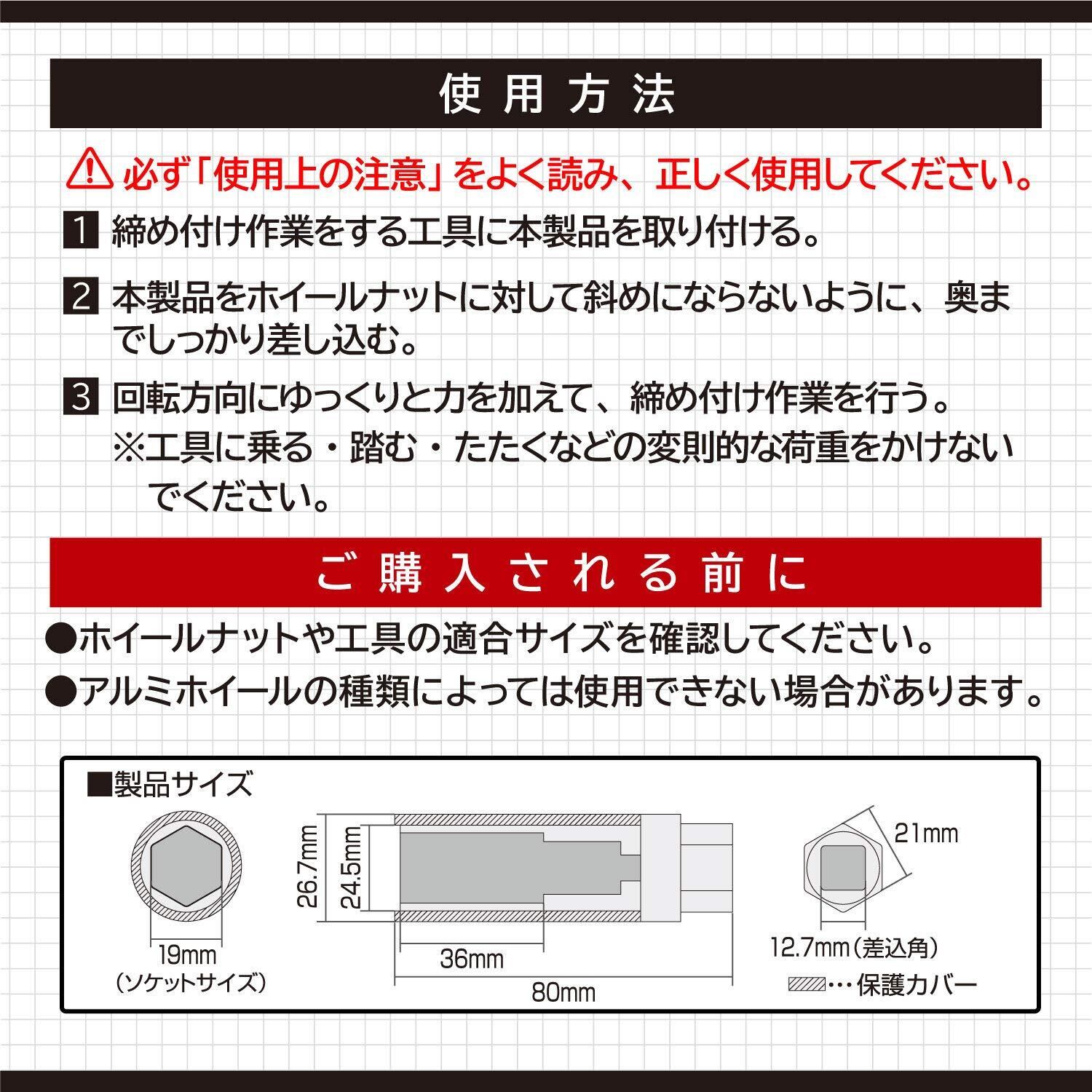 エーモン(amon) アルミホイール用薄口ソケット(キズ防止カバー付) 19mm 差込角サイズ12.7mm 8838